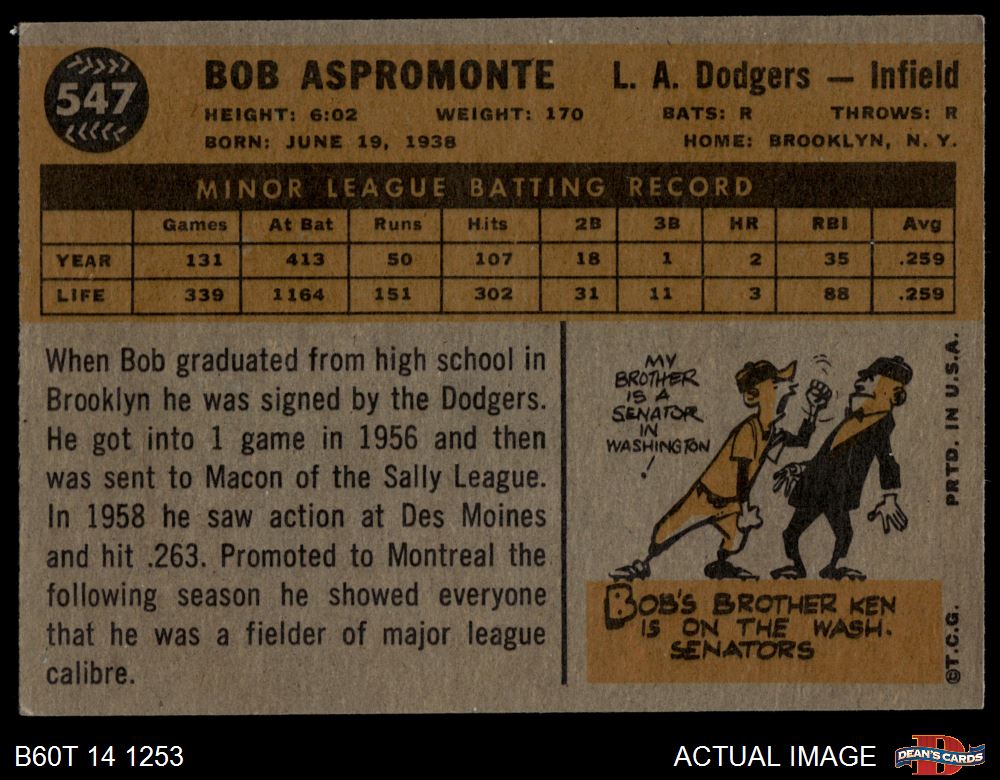 1960 Topps #547 Bob Aspromonte 4 - VG/EX
