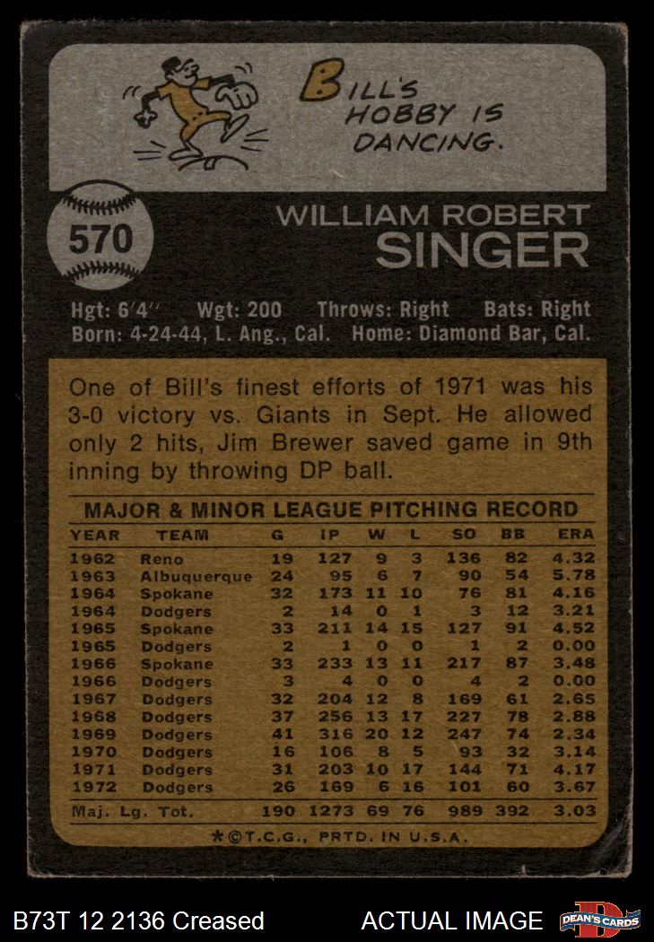 1973 Topps #570 Bill Singer 1 - POOR