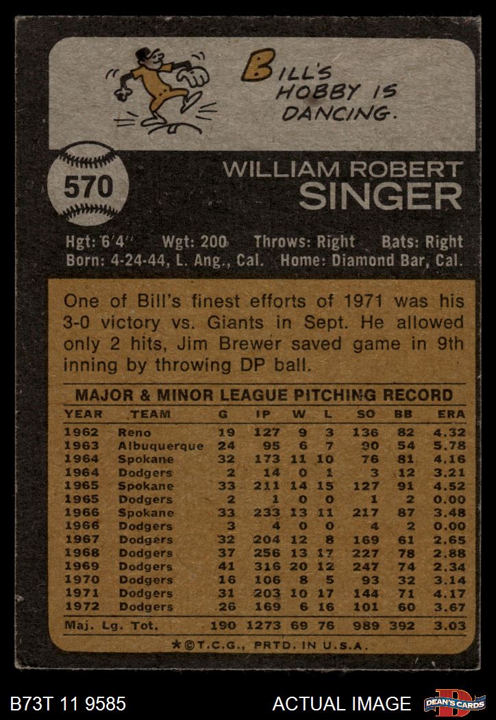 1973 Topps #570 Bill Singer 4 - VG/EX