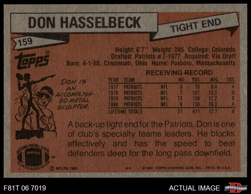 1981 Topps #159 Don Hasselbeck 8 - NM/MT