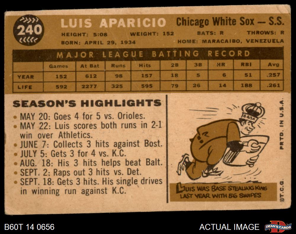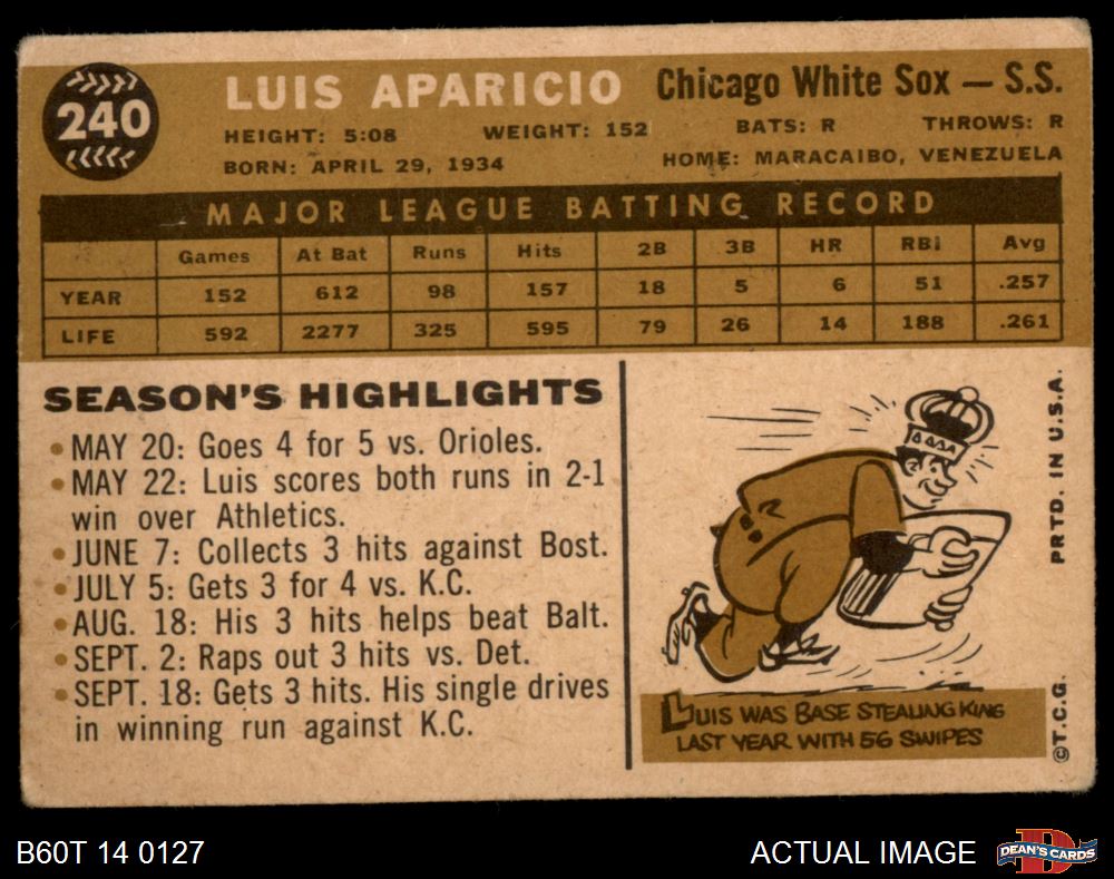 1960 Topps #240 Luis Aparicio 1.5 - FAIR