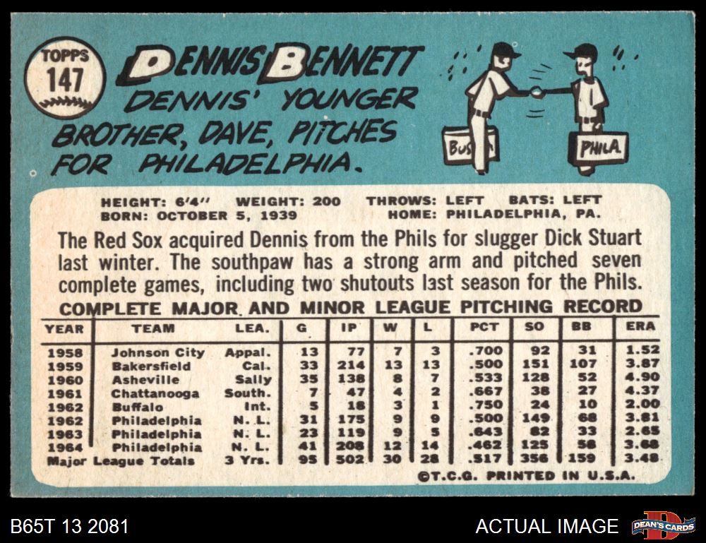 1965 Topps #147 Dennis Bennett 5.5 - EX+