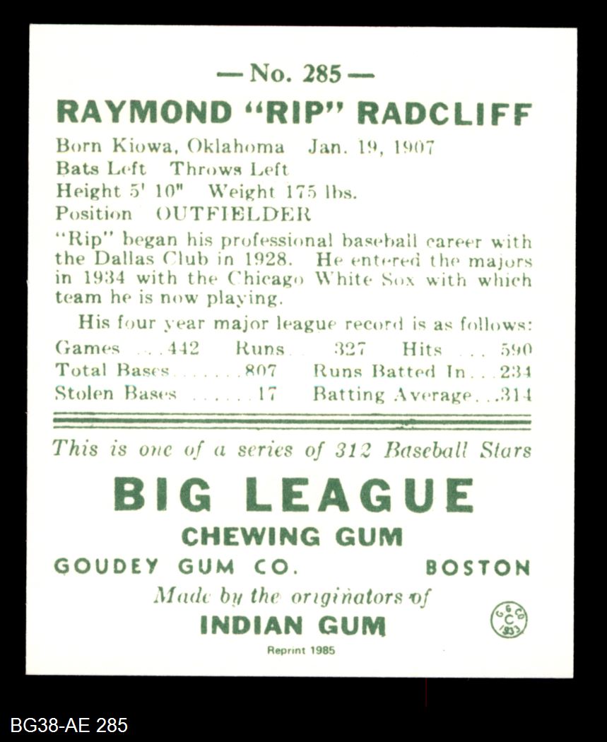 1938 Goudey Heads-Up Reprint #285 Rip Radcliff