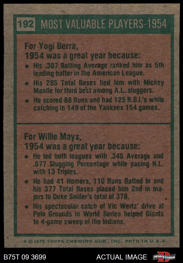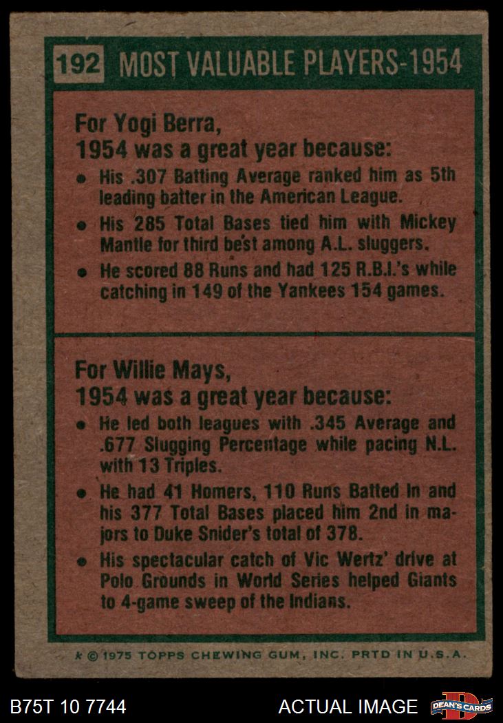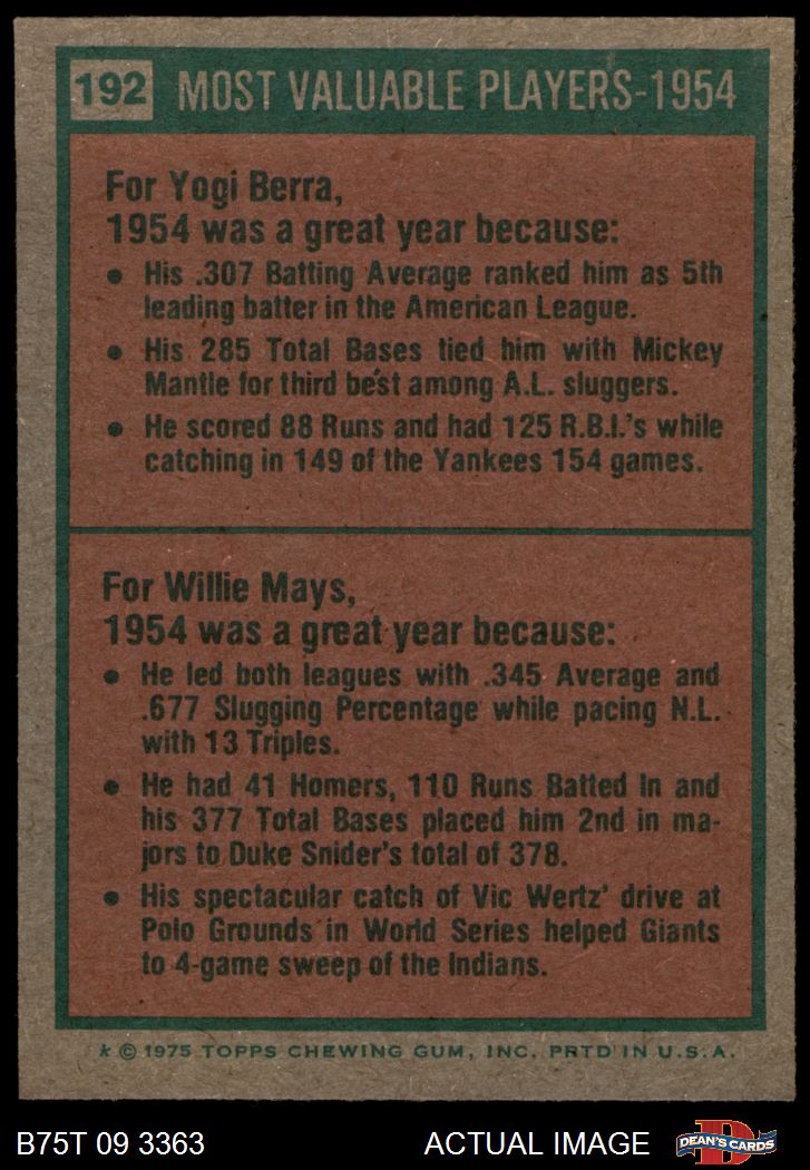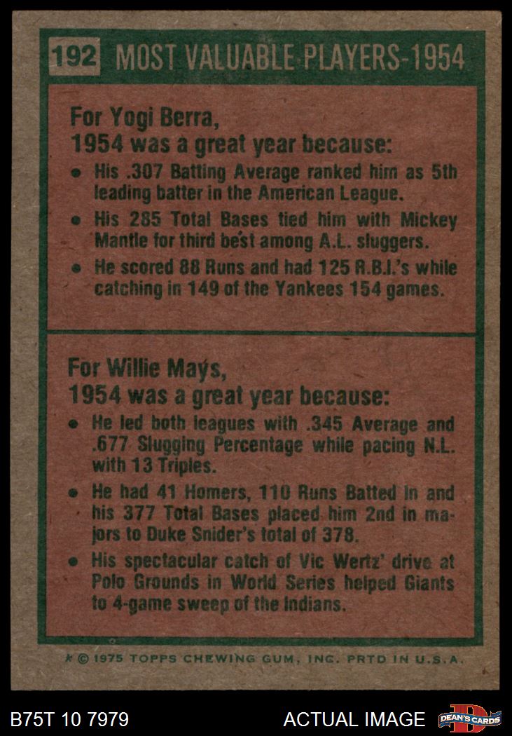 1975 Topps #192 1954 MVPs