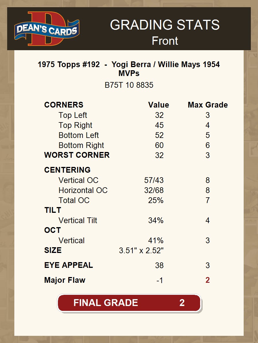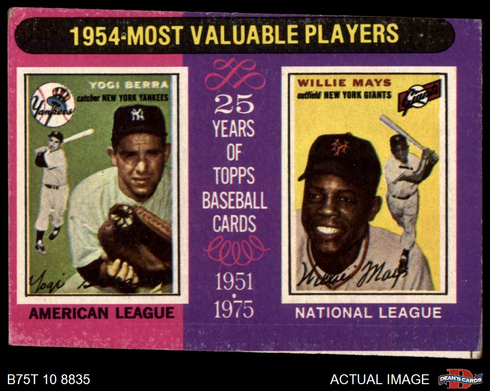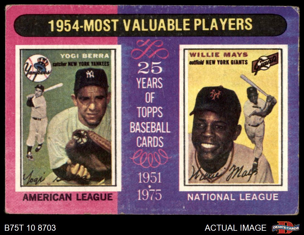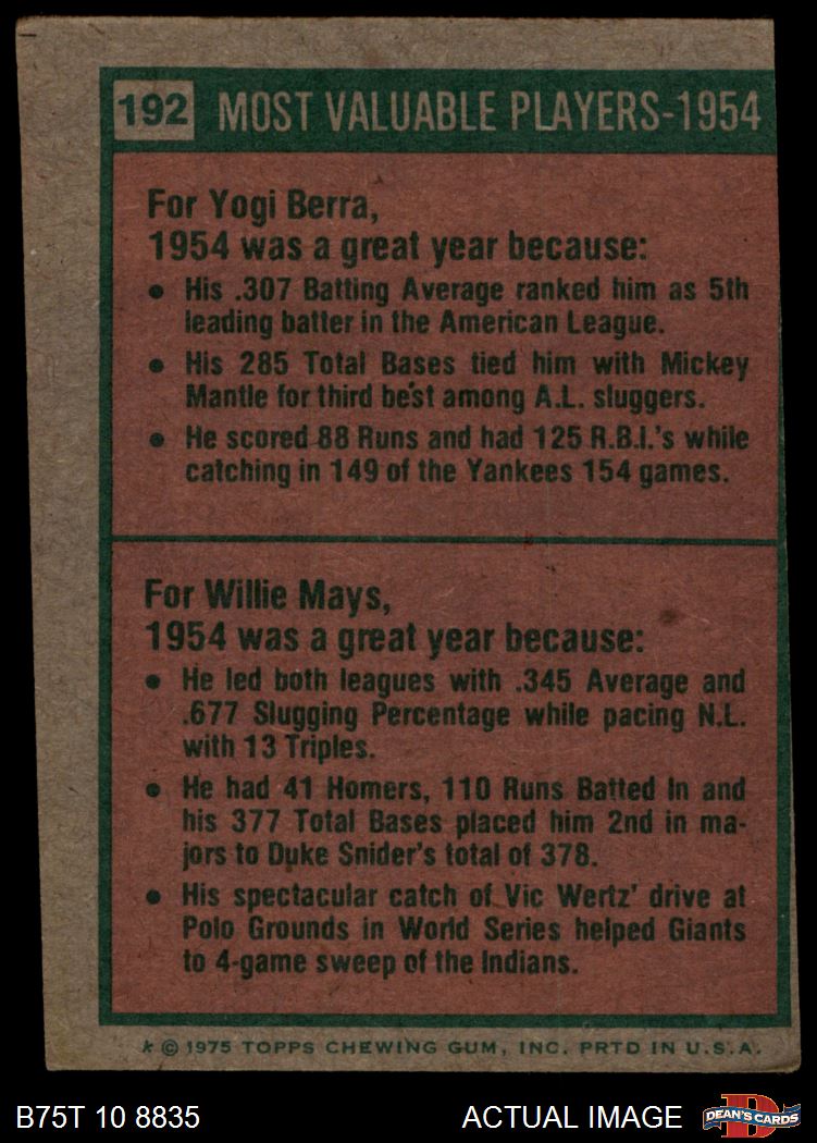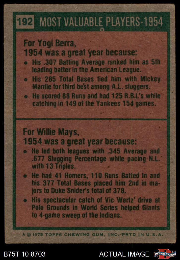 1975 Topps #192 - Yogi Berra / Willie Mays 1954 MVPs 2 - GOOD