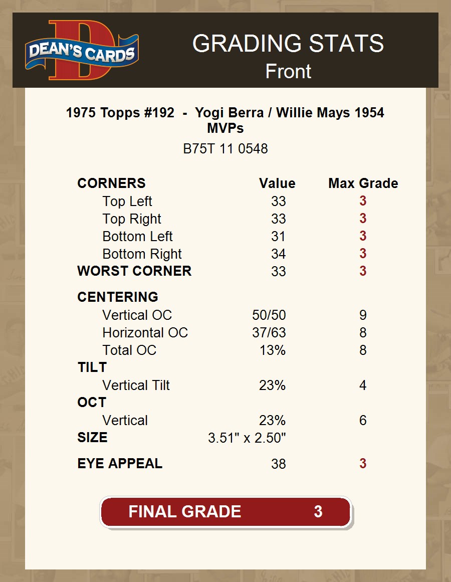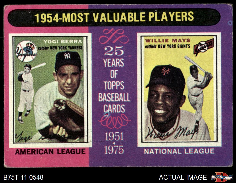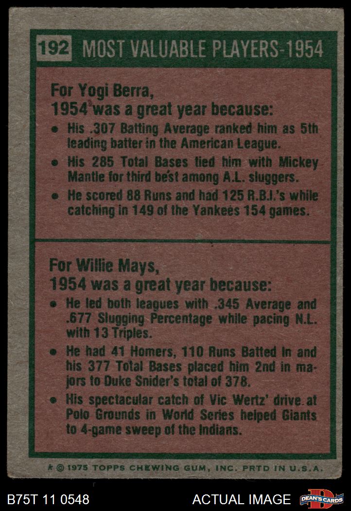 1975 Topps #192 - Yogi Berra / Willie Mays 1954 MVPs 3 - VG