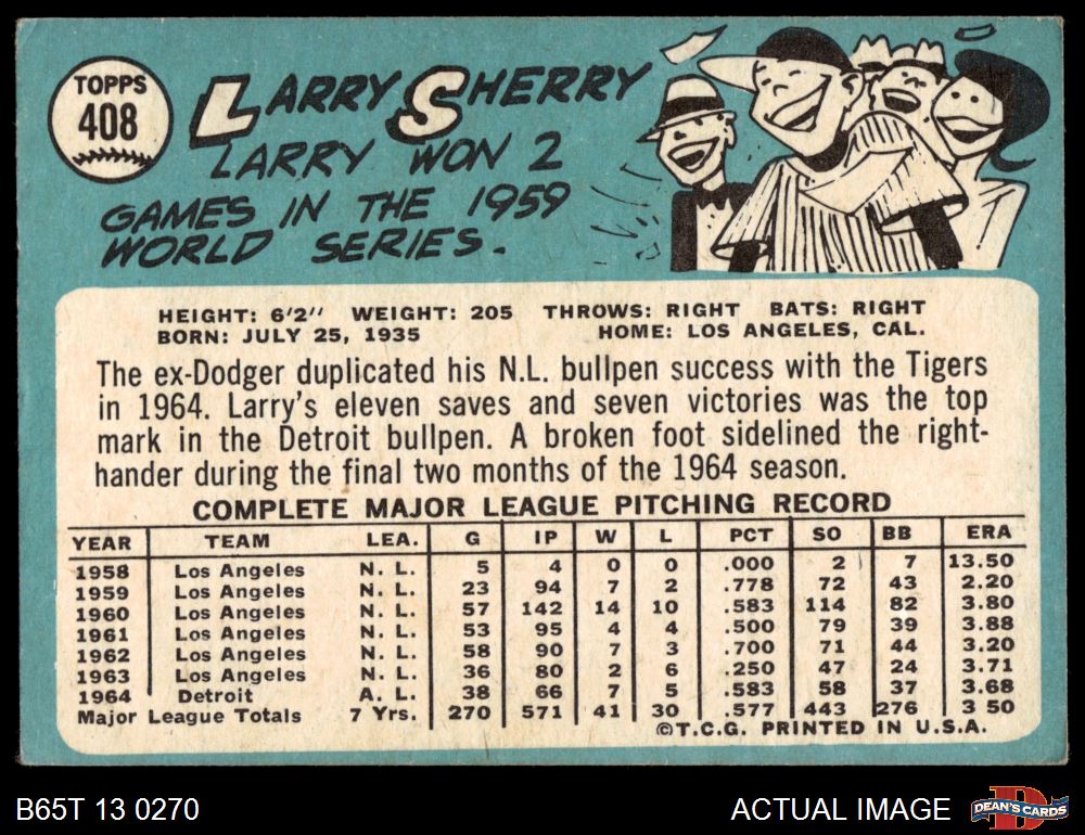 1965 Topps #408 Larry Sherry 4 - VG/EX