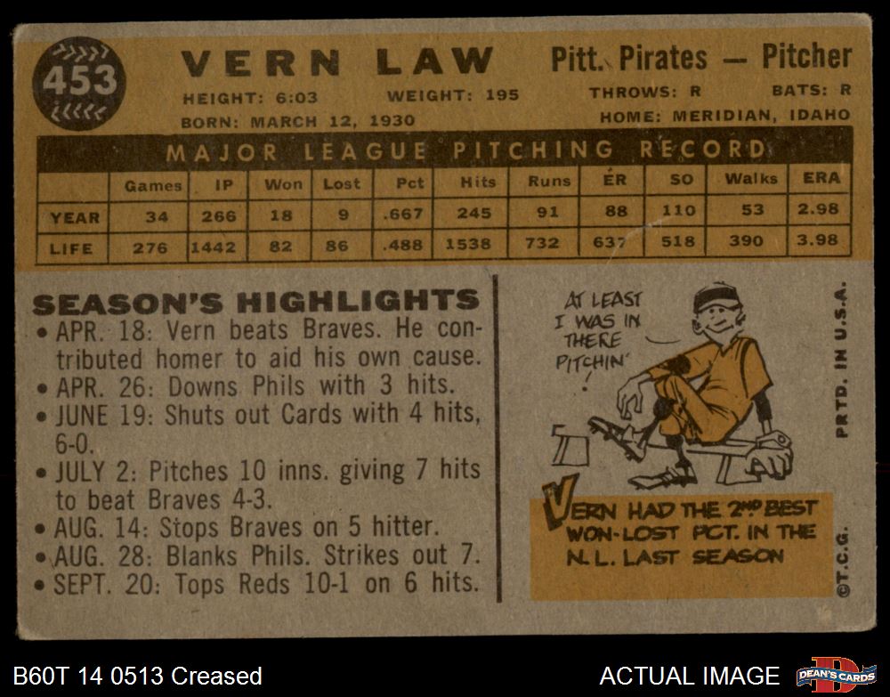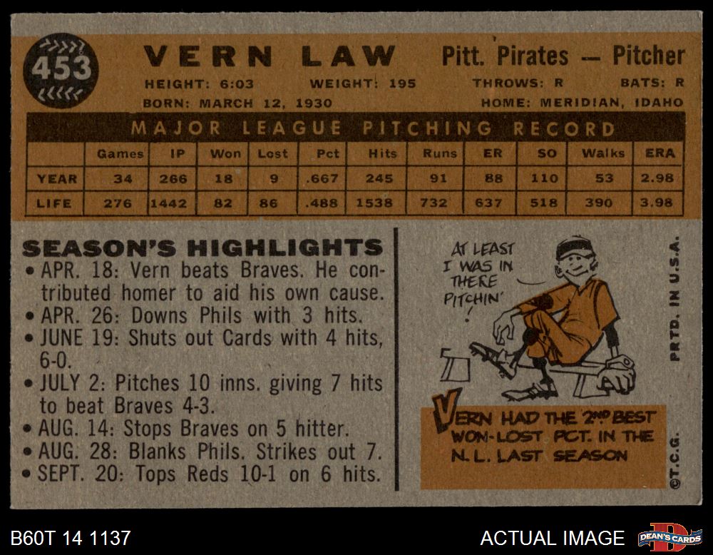 1960 Topps #453 Vern Law