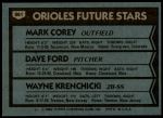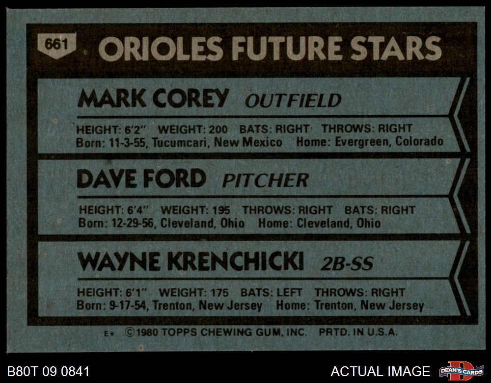 1980 Topps #661 - Mark Corey / Dave Ford / Wayne Krenchiki Orioles Rookies 6 - EX/MT
