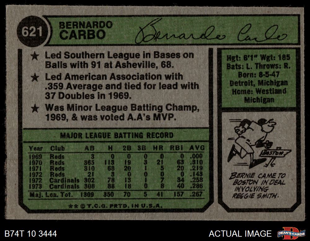 1974 Topps #621 Bernie Carbo 4 - VG/EX