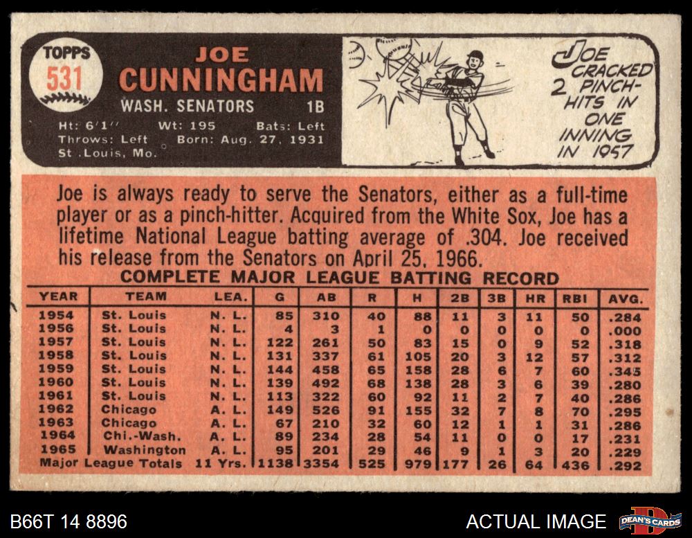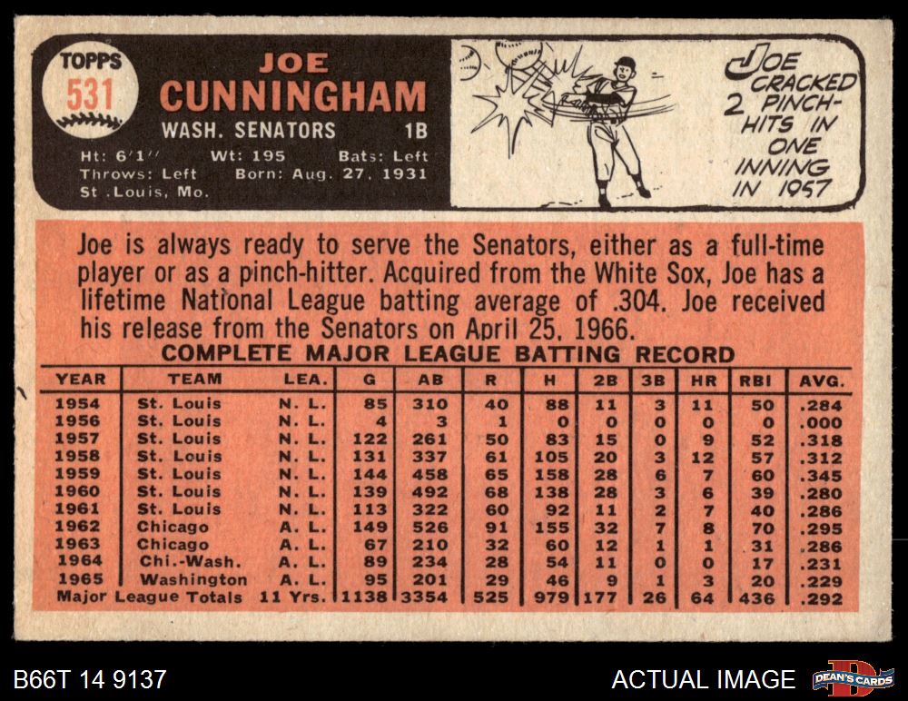 1966 Topps #531 Joe Cunningham
