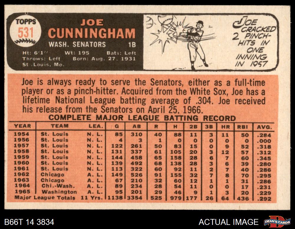 1966 Topps #531 Joe Cunningham 6 - EX/MT
