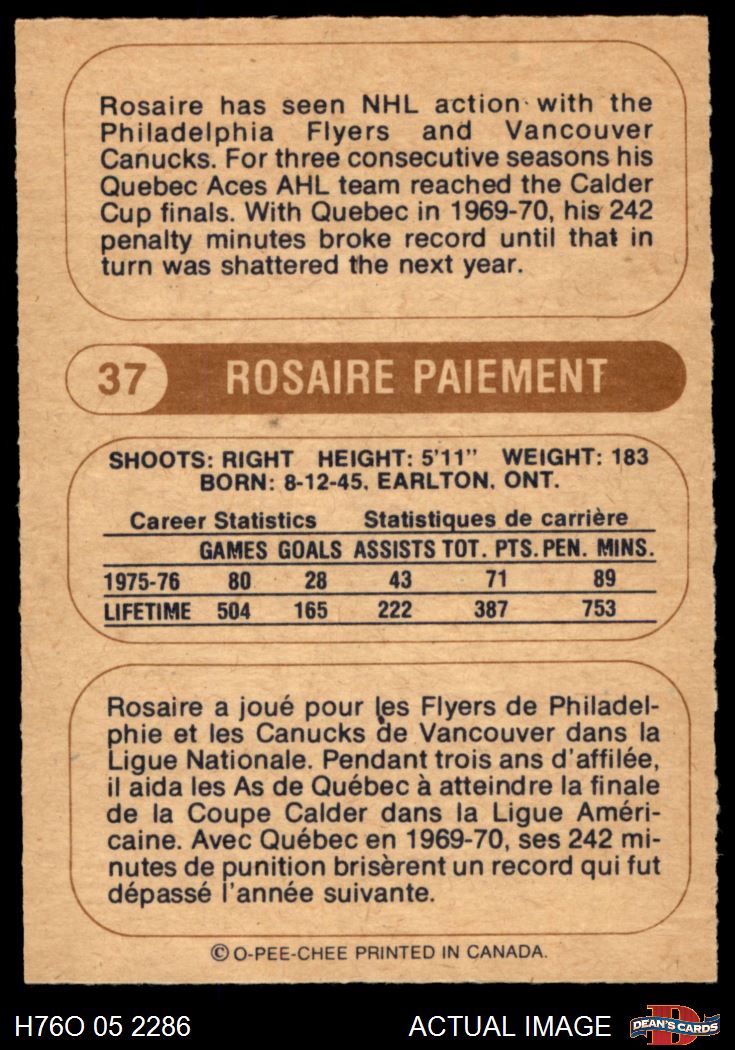 1976 O-Pee-Chee WHA #37 Rosaire Paiement 5 - EX