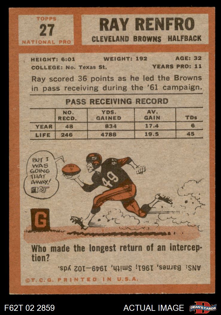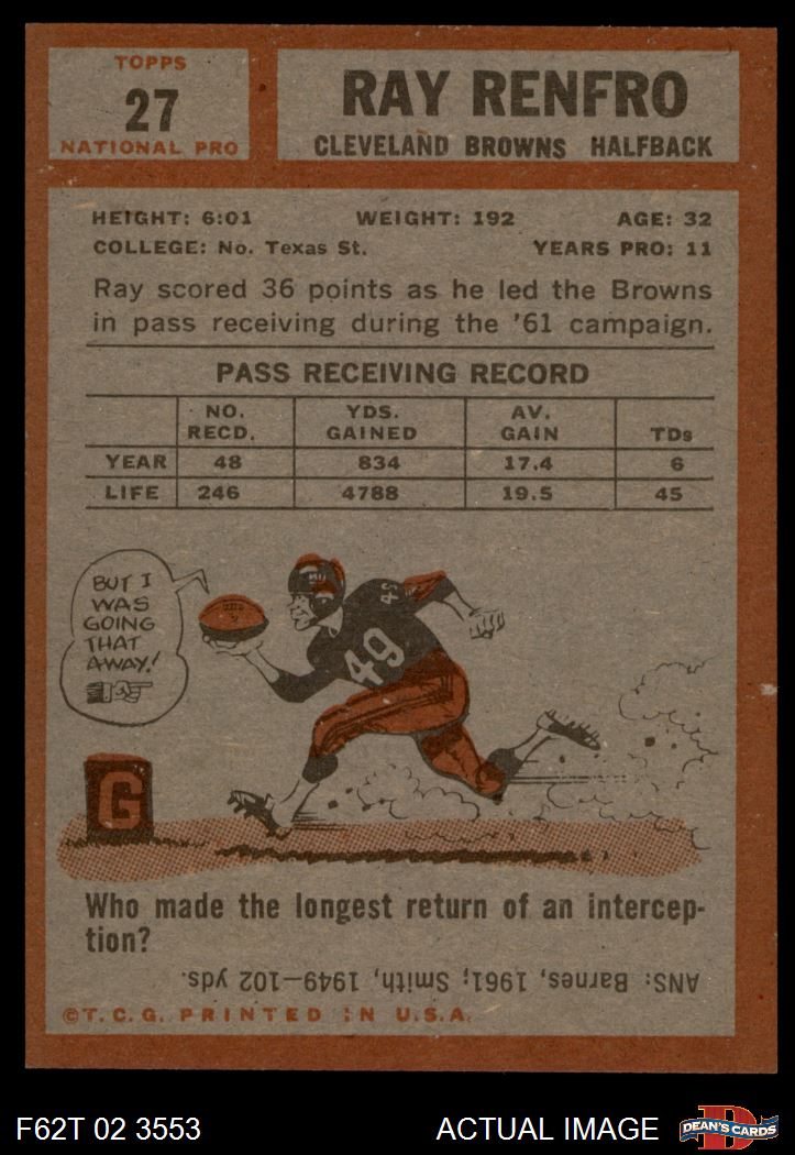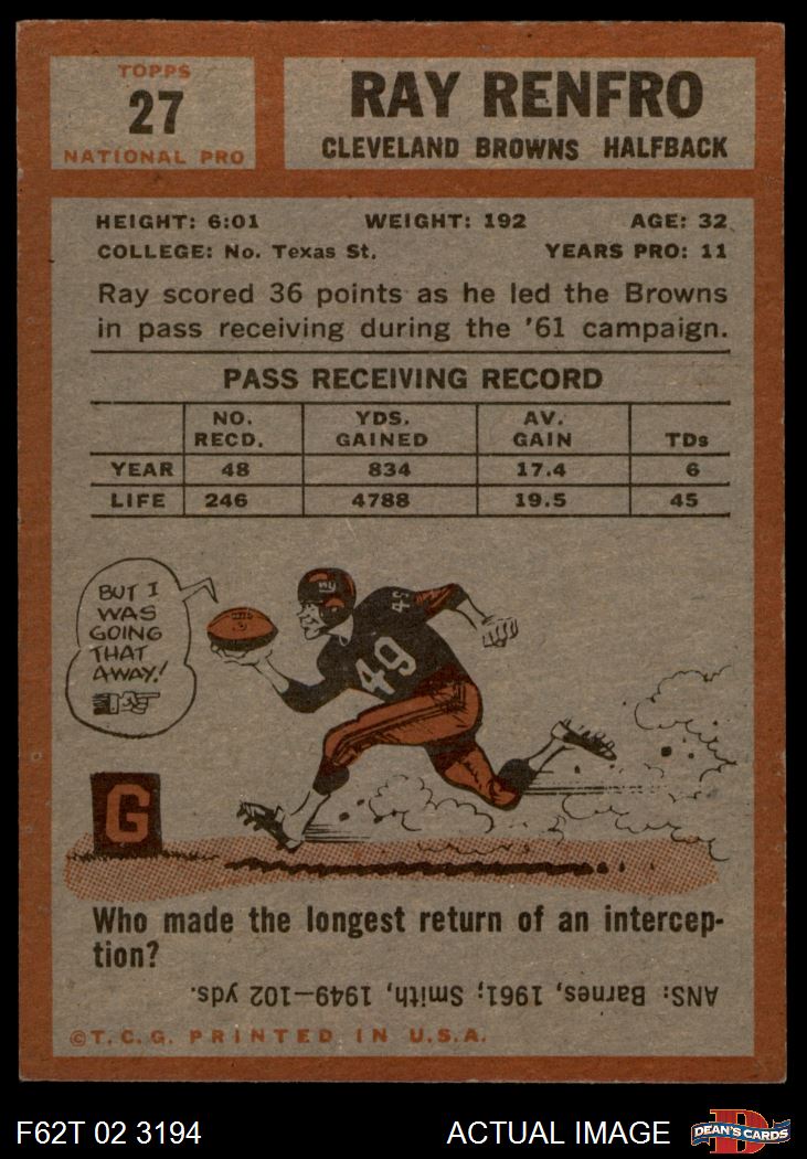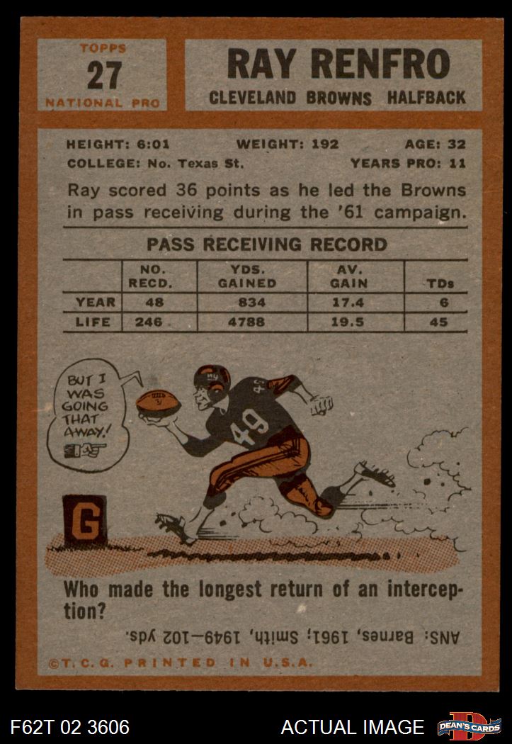 1962 Topps #27 Ray Renfro