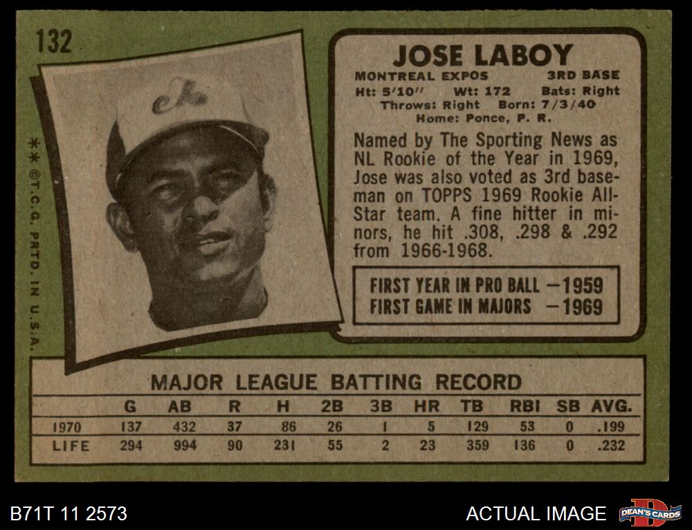 1971 Topps #132 Jose Laboy 5 - EX