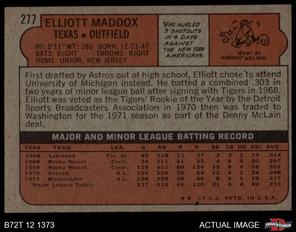 1972 Topps #277 Elliott Maddox 3 - VG
