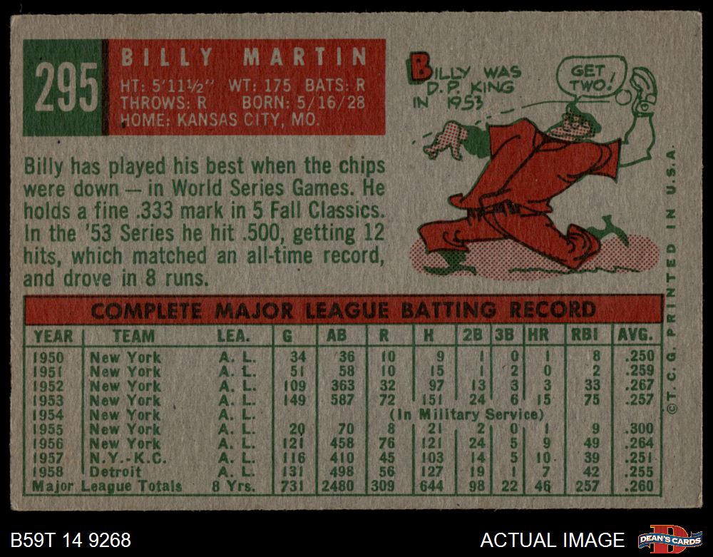 1959 Topps #295 Billy Martin 4 - VG/EX