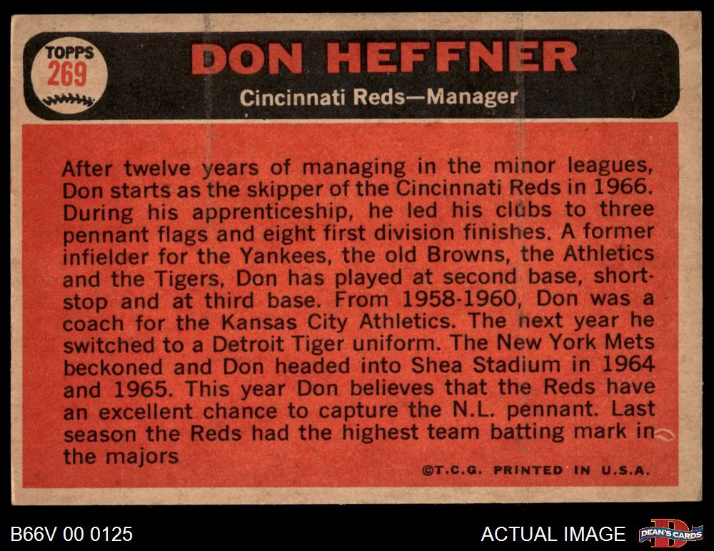 1966 Topps Venezuelan #269 Don Heffner 6 - EX/MT