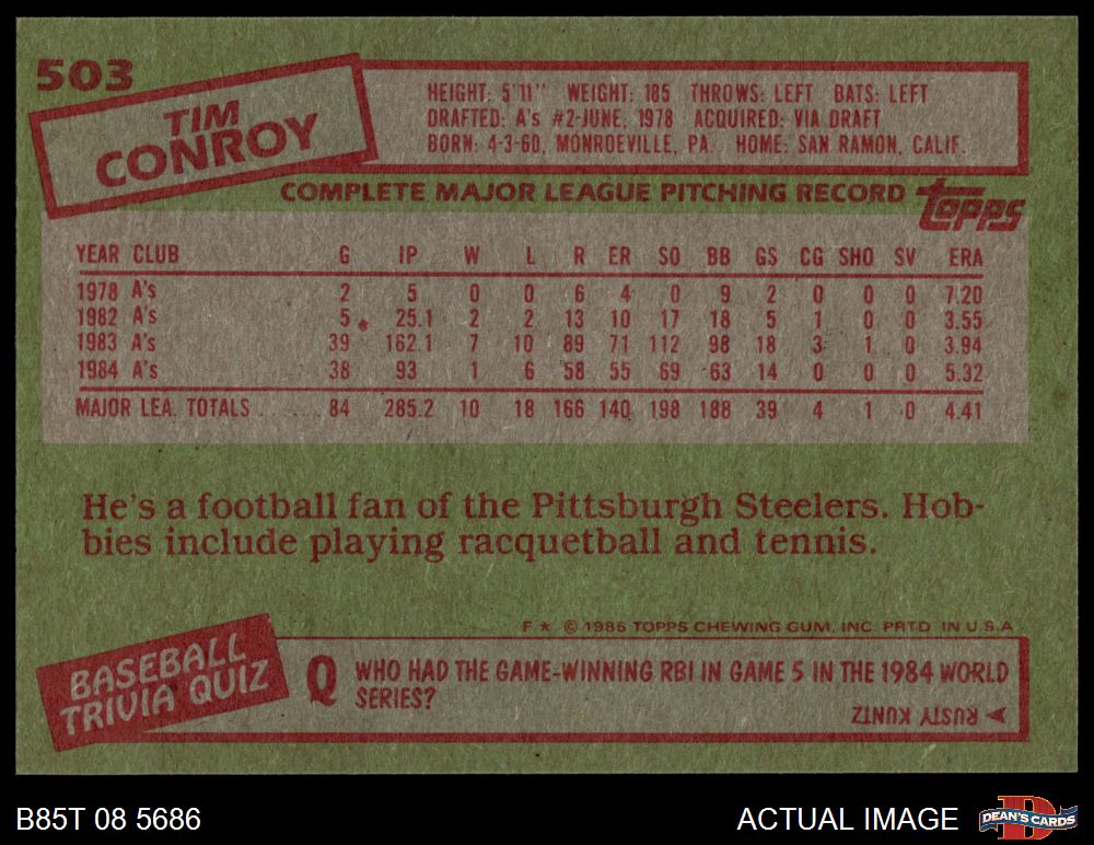 1985 Topps #503 Tim Conroy 8 - NM/MT