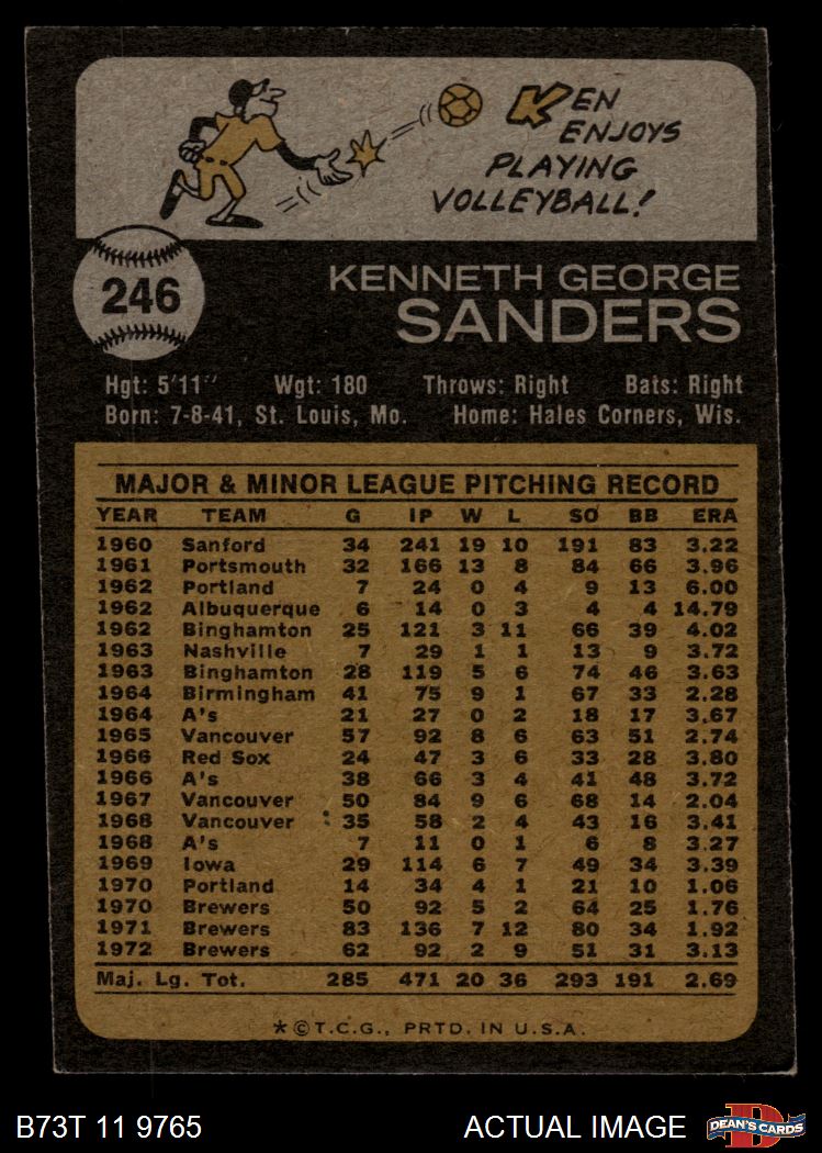 1973 Topps #246 Ken Sanders 4 - VG/EX