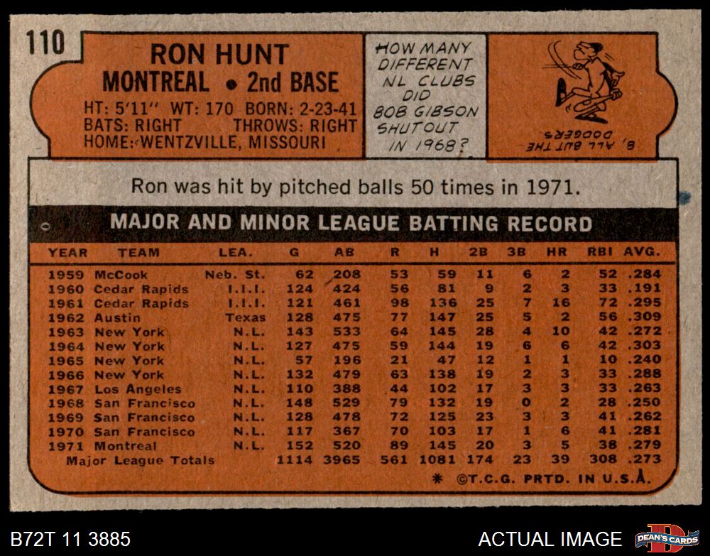 1972 Topps #110 Ron Hunt