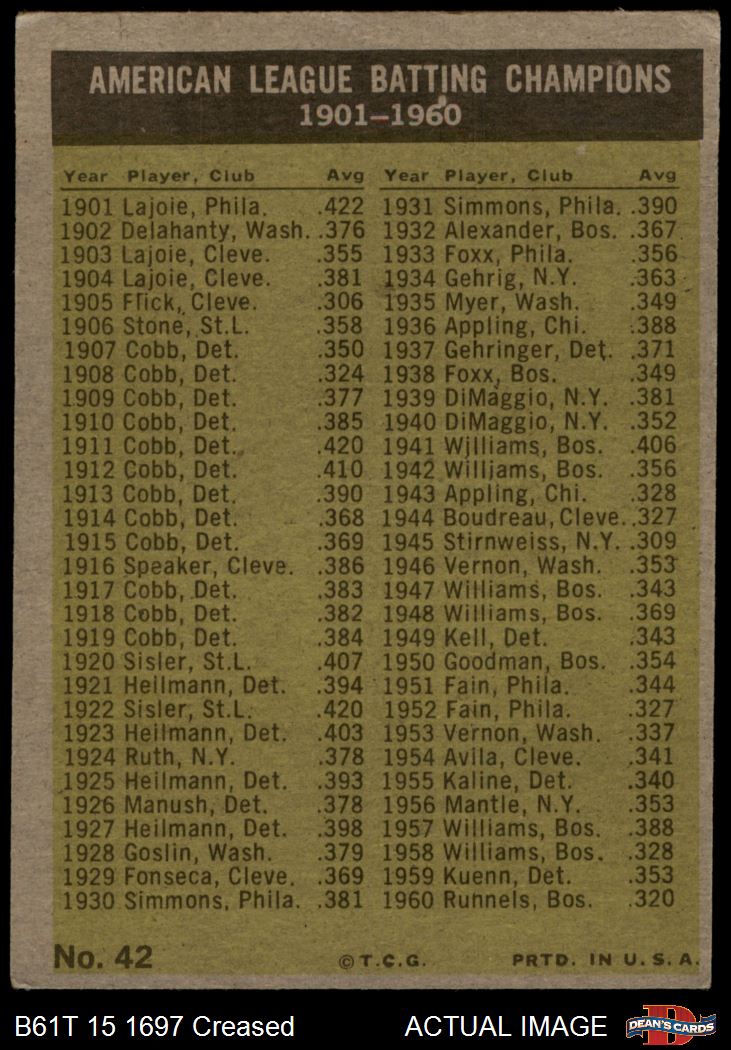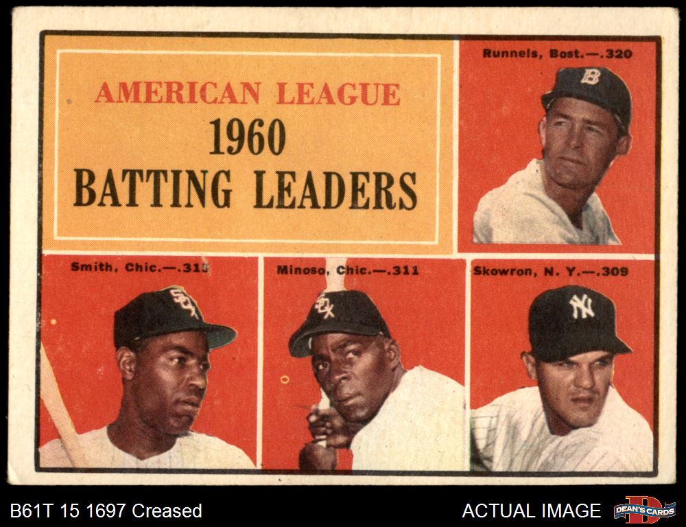 1961 Topps #42 - Minnie Minoso / Pete Runnels / Bill Skowron / Al Smith AL Batting Leaders 3 - VG