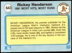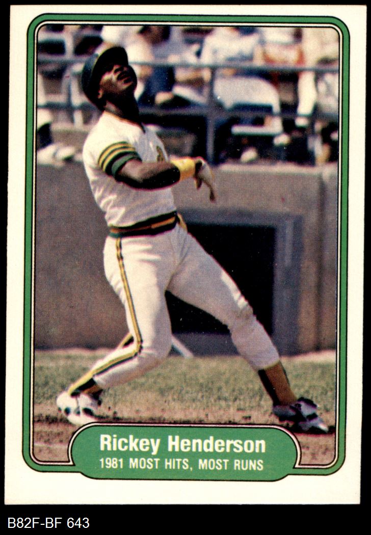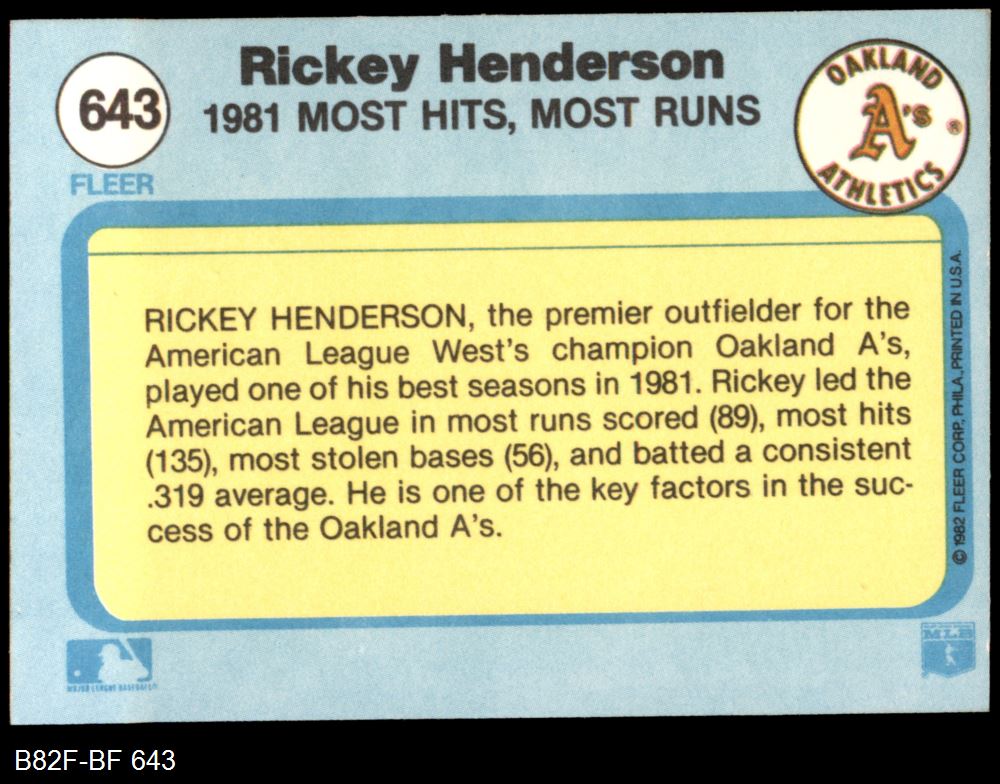 1982 Fleer #643 - Rickey Henderson In Action 8 - NM/MT