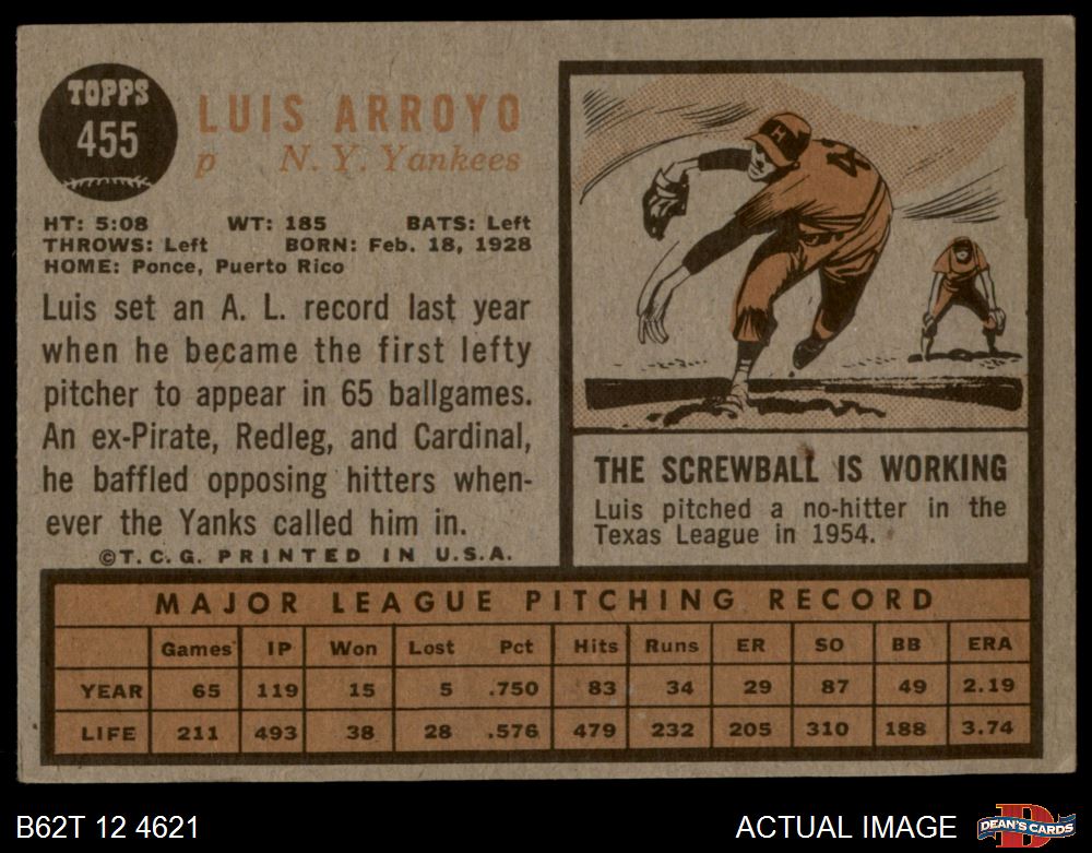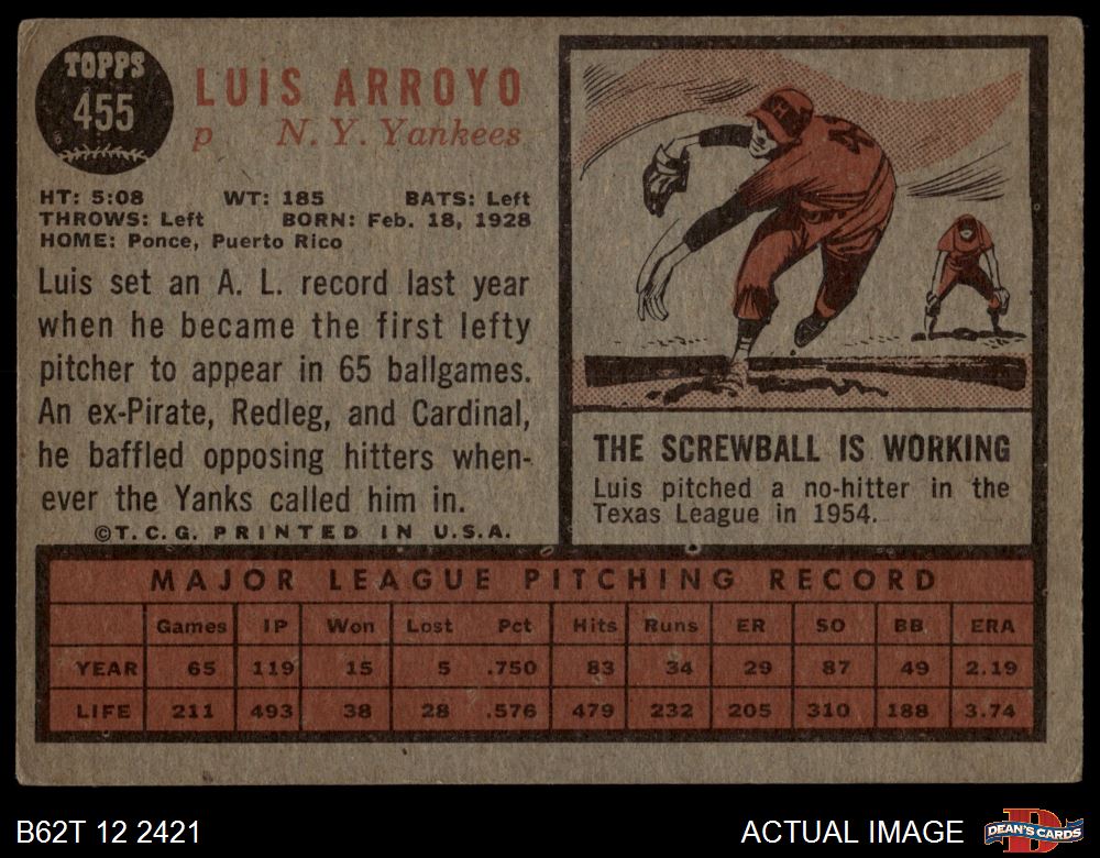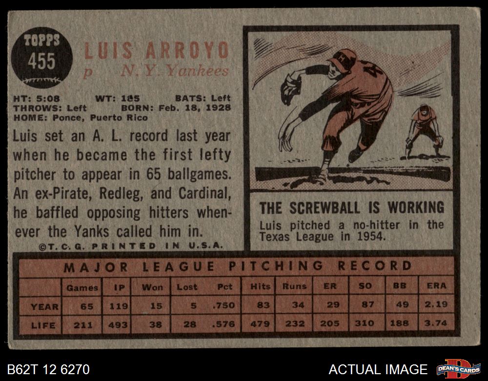 1962 Topps #455 Luis Arroyo
