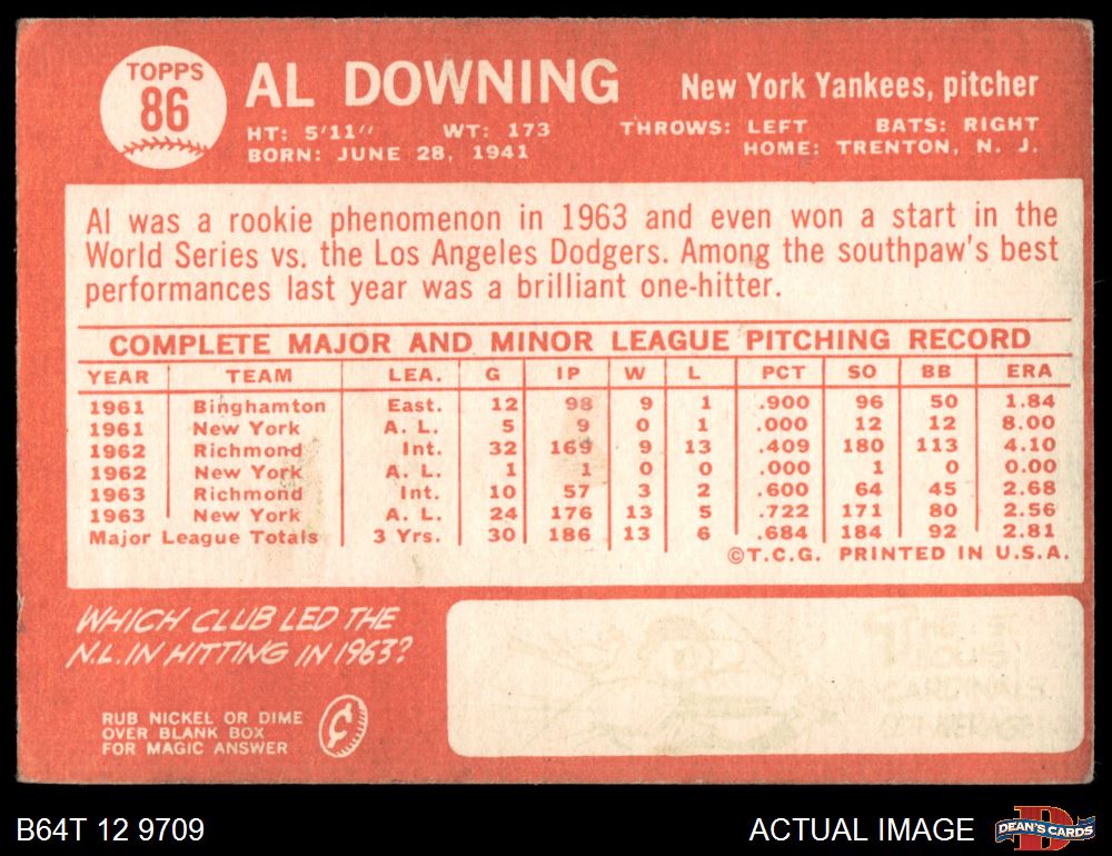 1964 Topps #86 Al Downing 3 - VG