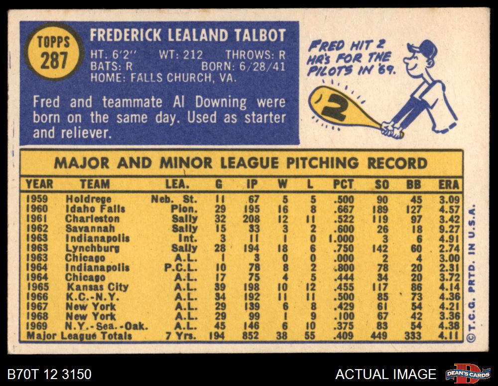 1970 Topps #287 Fred Talbot 4 - VG/EX