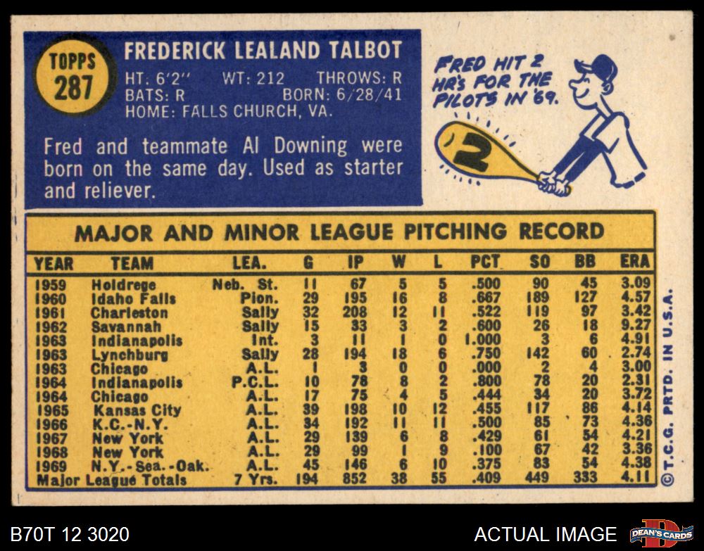 1970 Topps #287 Fred Talbot 5 - EX