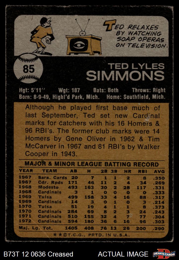1973 Topps #85 Ted Simmons 2 - GOOD