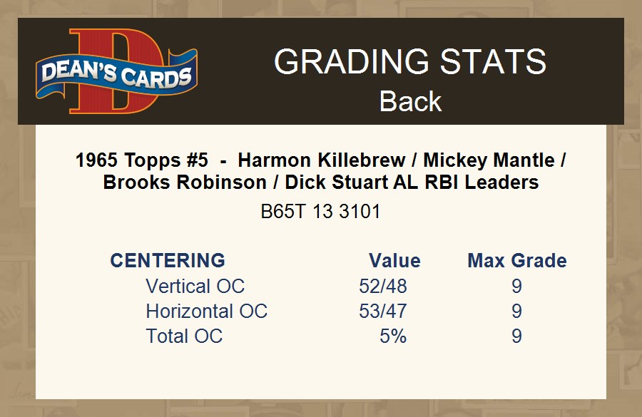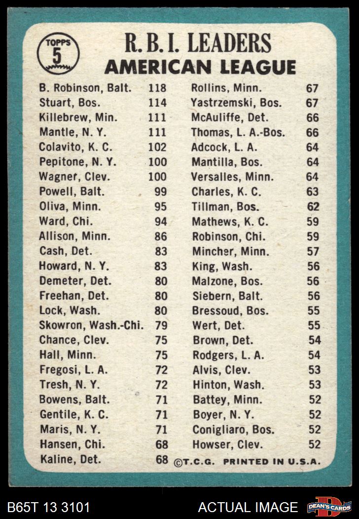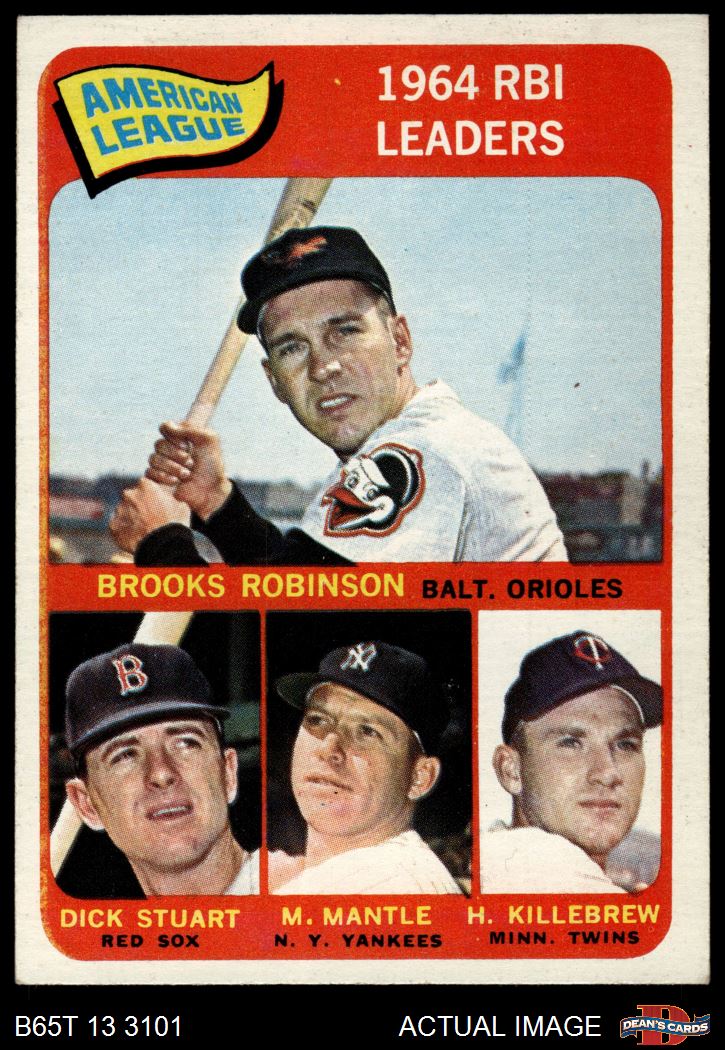 1965 Topps #5 - Harmon Killebrew / Mickey Mantle / Brooks Robinson / Dick Stuart AL RBI Leaders 4 - VG/EX