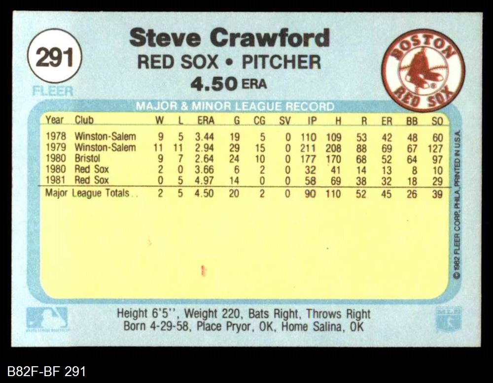 1982 Fleer #291 Steve Crawford 8 - NM/MT