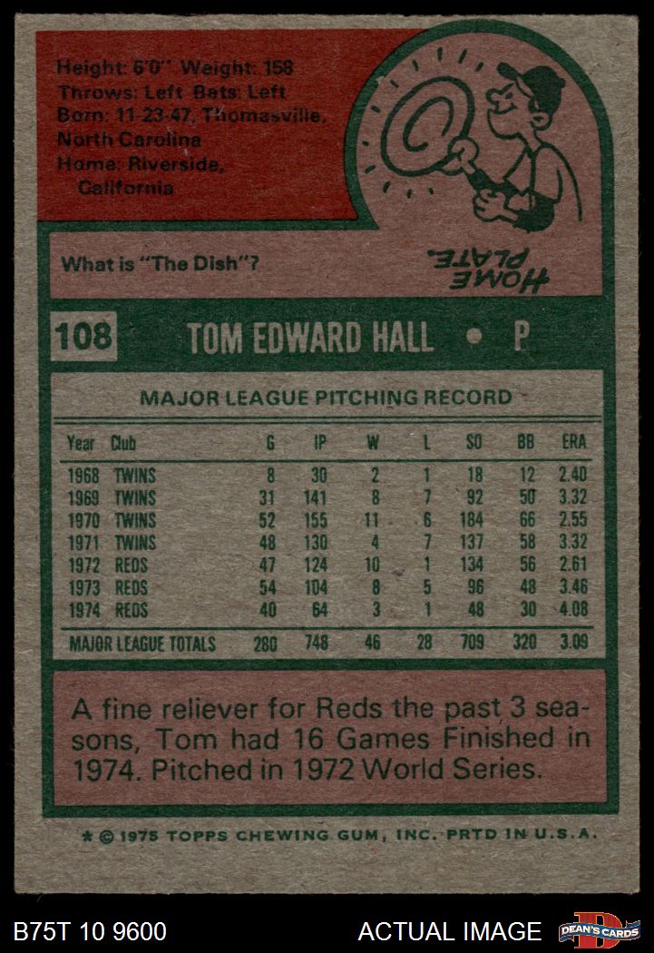 1975 Topps #108 Tom Hall 3 - VG