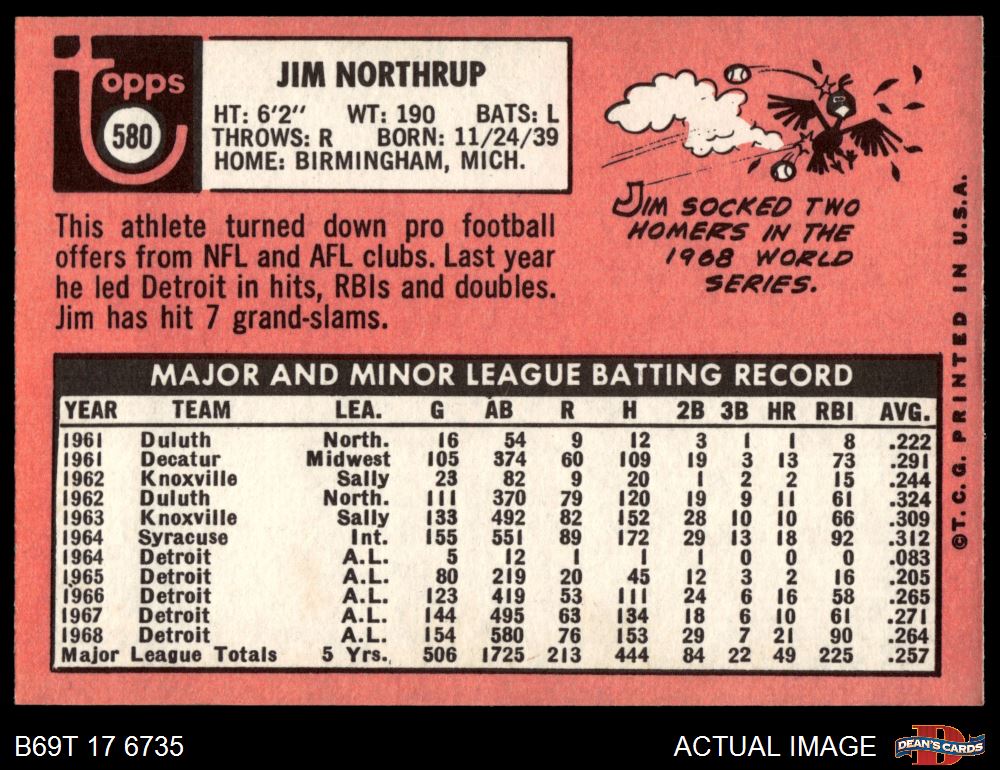 1969 Topps #580 Jim Northrup 6 - EX/MT