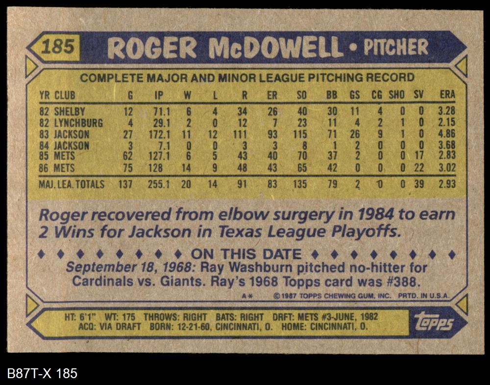 1987 Topps #185 Roger McDowell