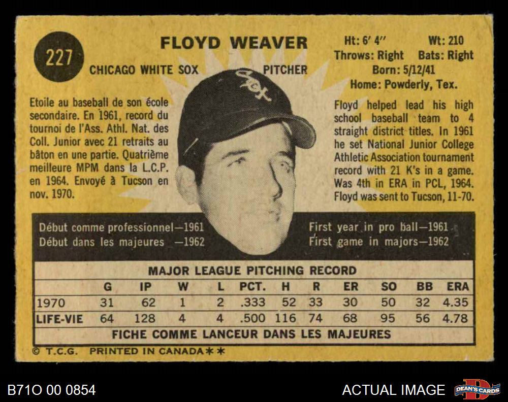 1971 O-Pee-Chee #227 Floyd Weaver 4 - VG/EX