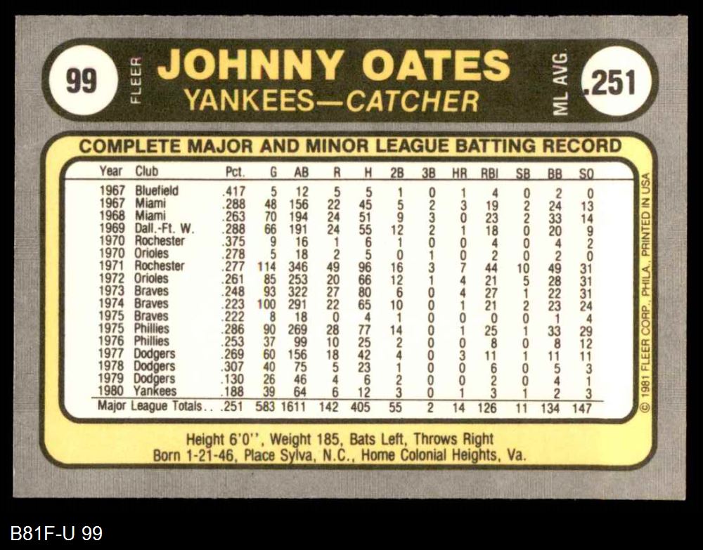 1981 Fleer #99 Johnny Oates 8 - NM/MT