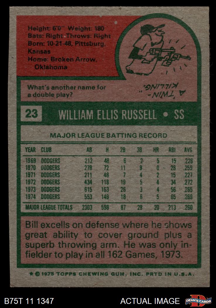 1975 Topps #23 Bill Russell 5 - EX