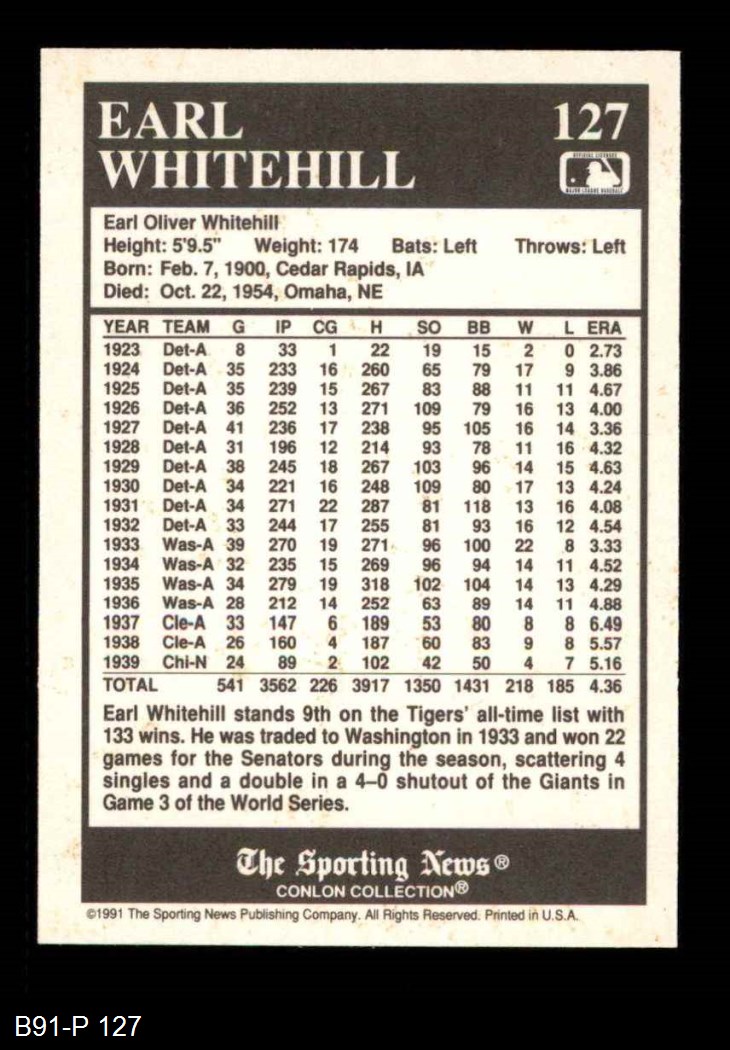 1991 Conlon #127 Earl Whitehill 8 - NM/MT