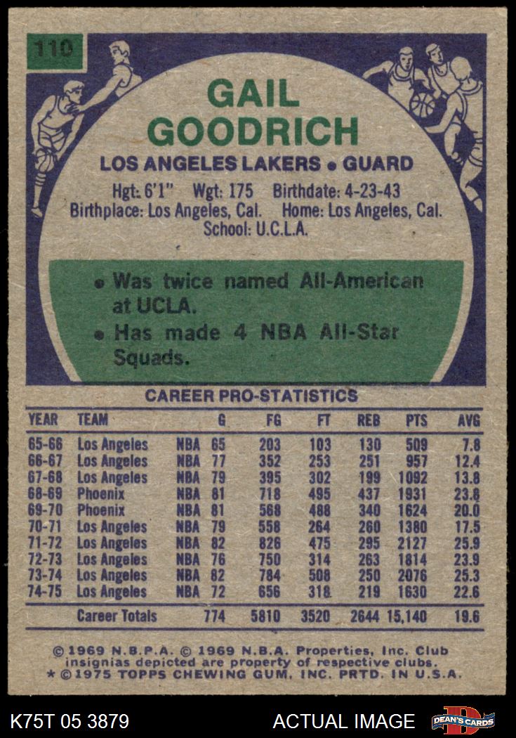 1975-76 Topps Basketball Cards (3,072 available)1975 Topps Lakers (96 available)