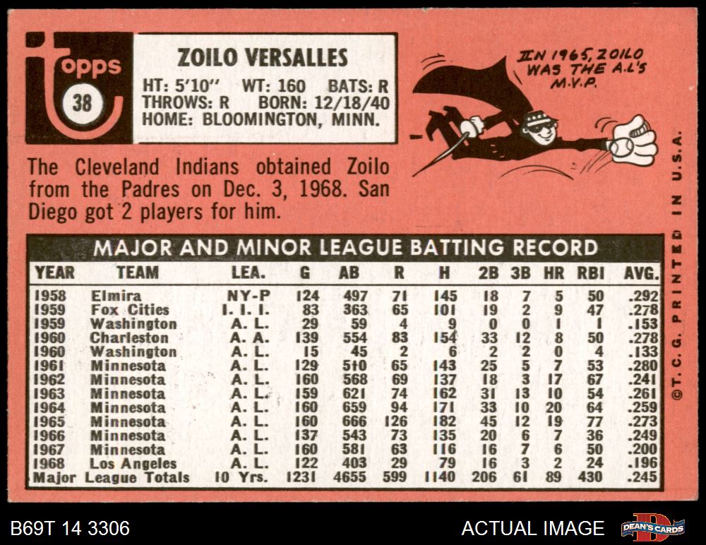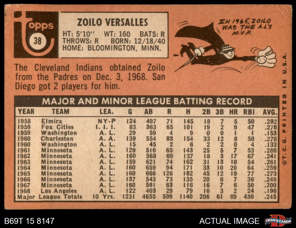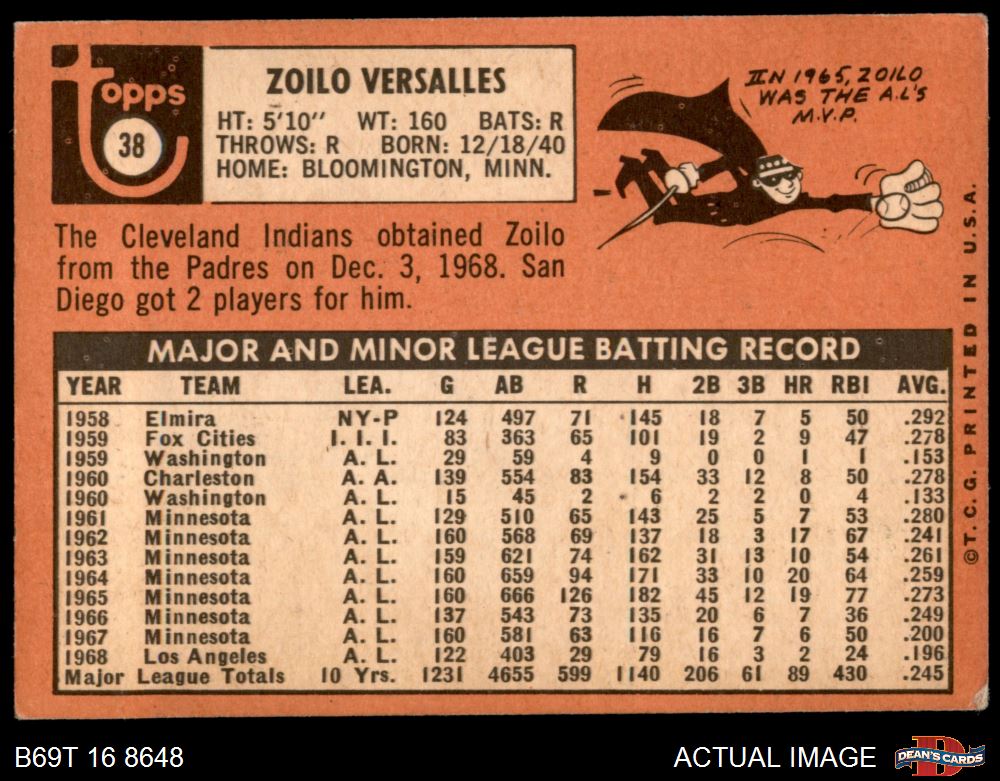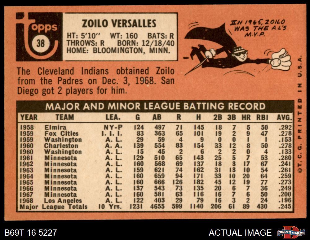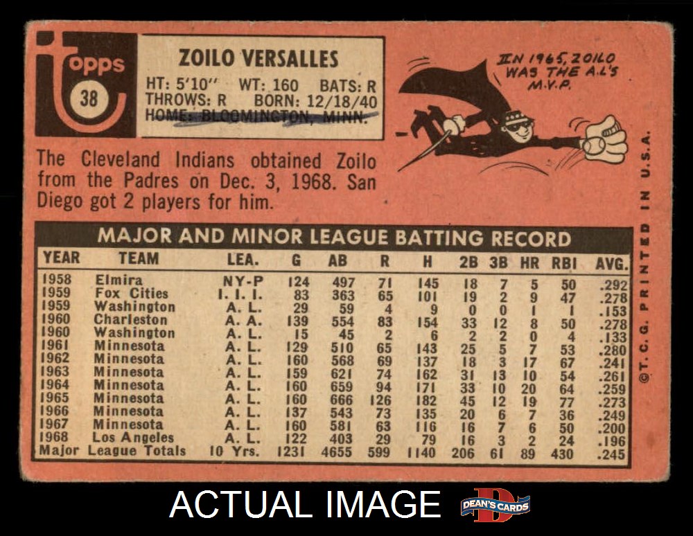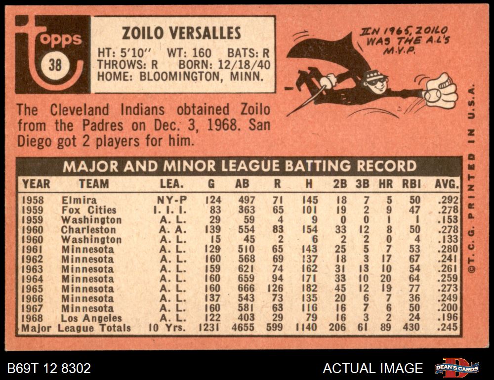 1969 Topps #38 Zoilo Versalles