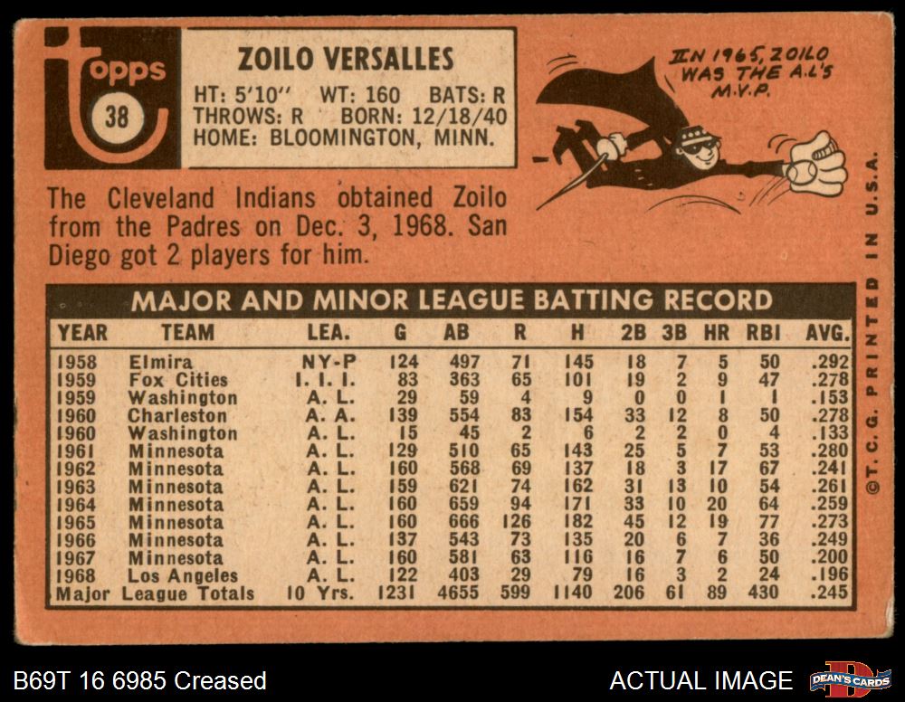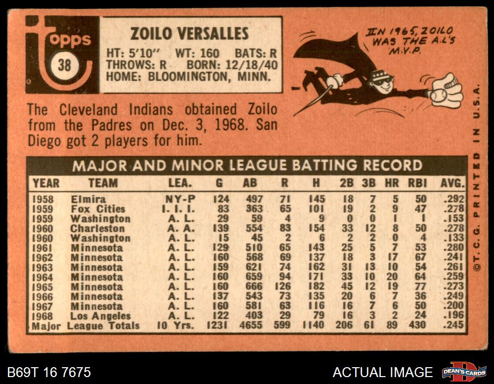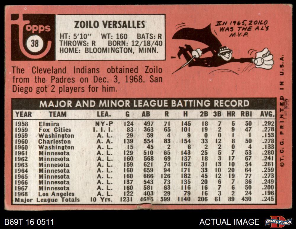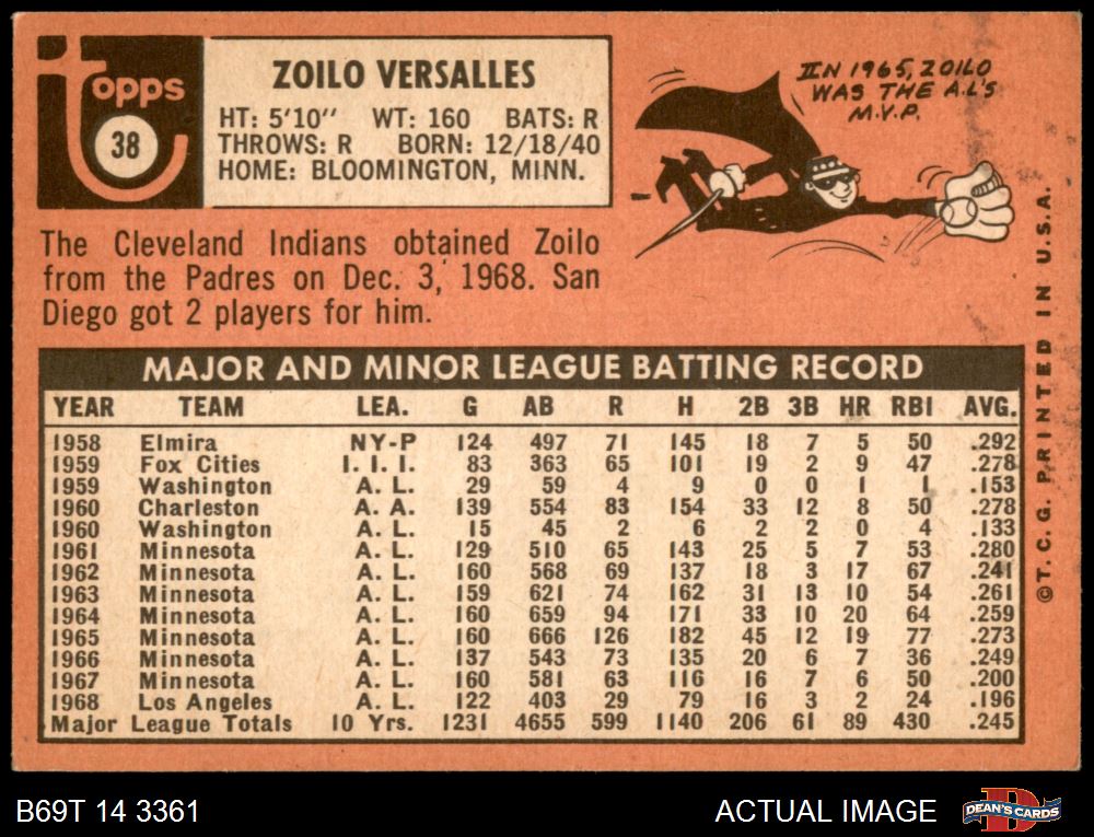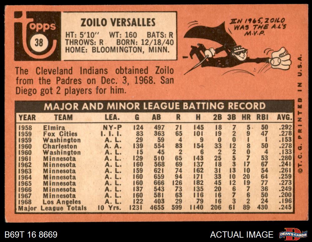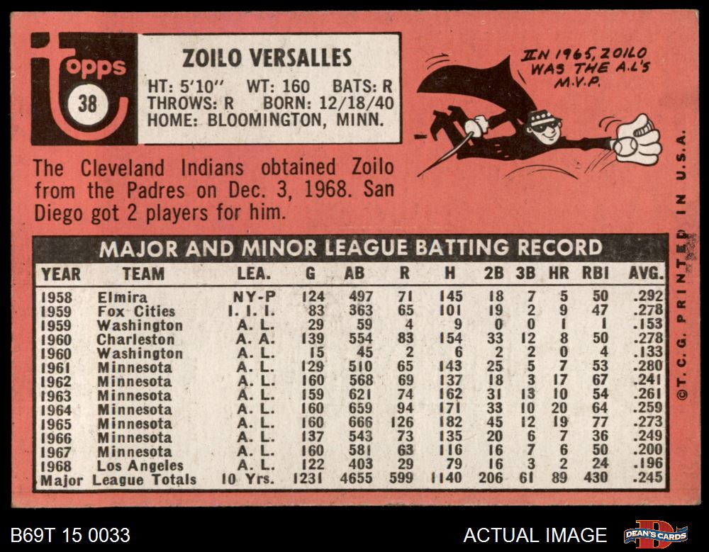 1969 Topps #38 Zoilo Versalles
