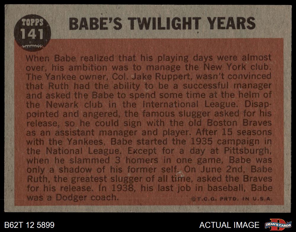 1962 Topps #141 NRM - Babe Ruth Twilight Years 3.5 - VG+
