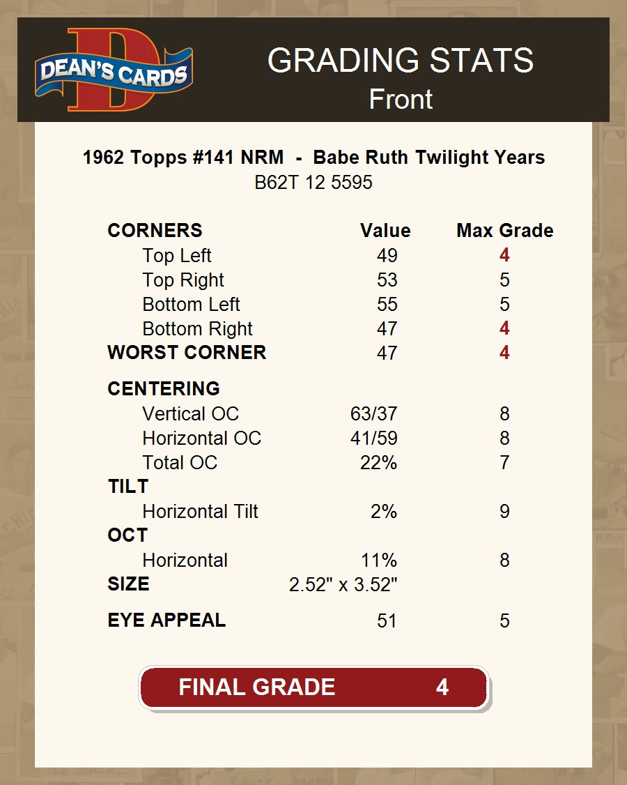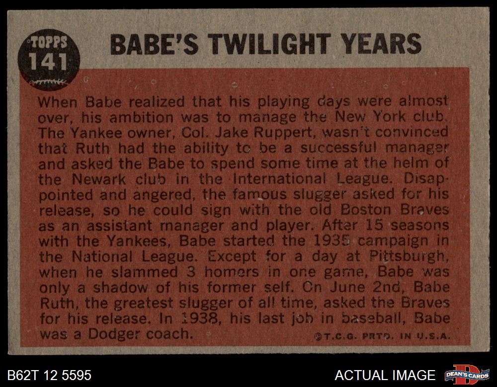 1962 Topps #141 NRM - Babe Ruth Twilight Years 4 - VG/EX