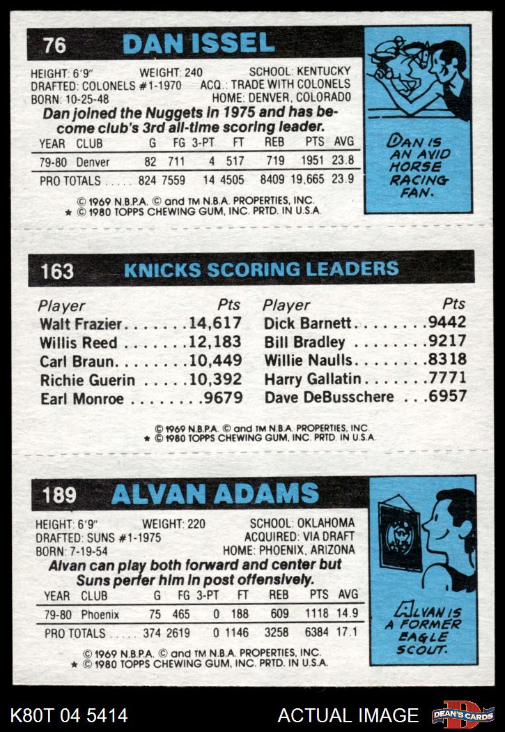 1980 Topps - Alvan Adams / Bill Cartwright / Dan Issel 189 / 163 / 76 7 - NM