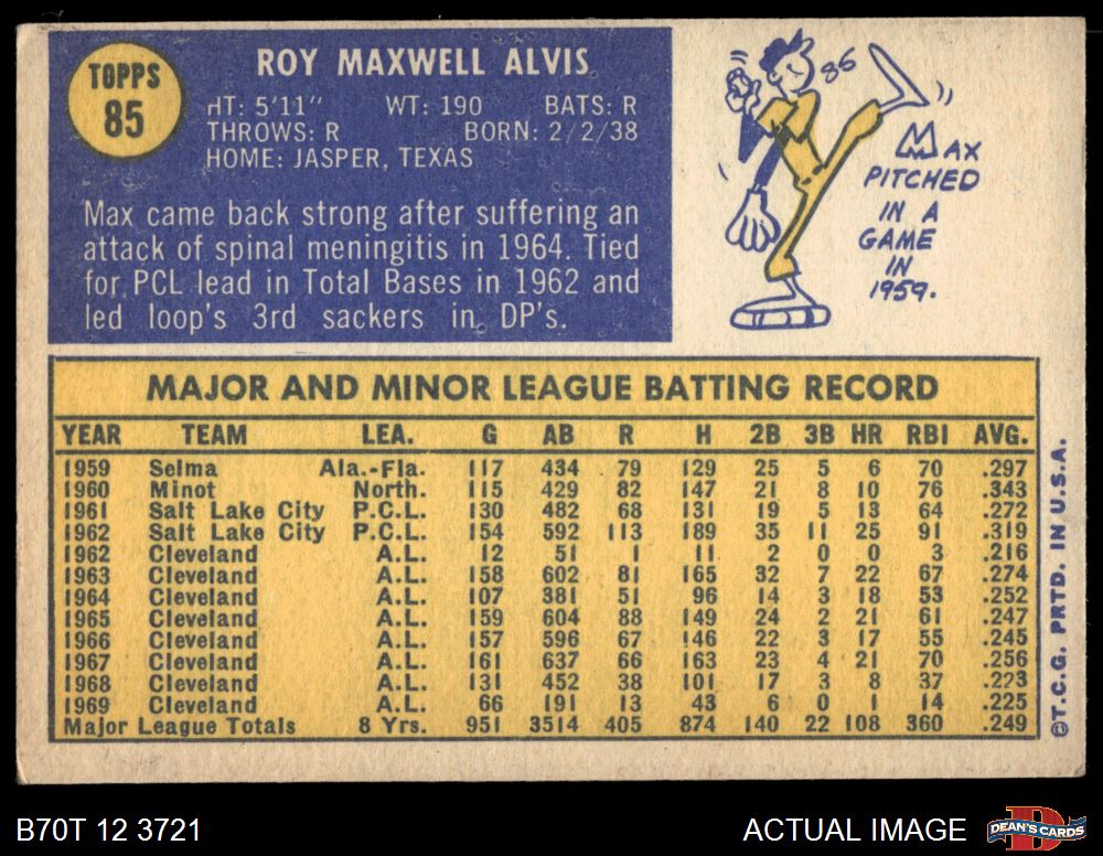 1970 Topps #85 Max Alvis 4 - VG/EX