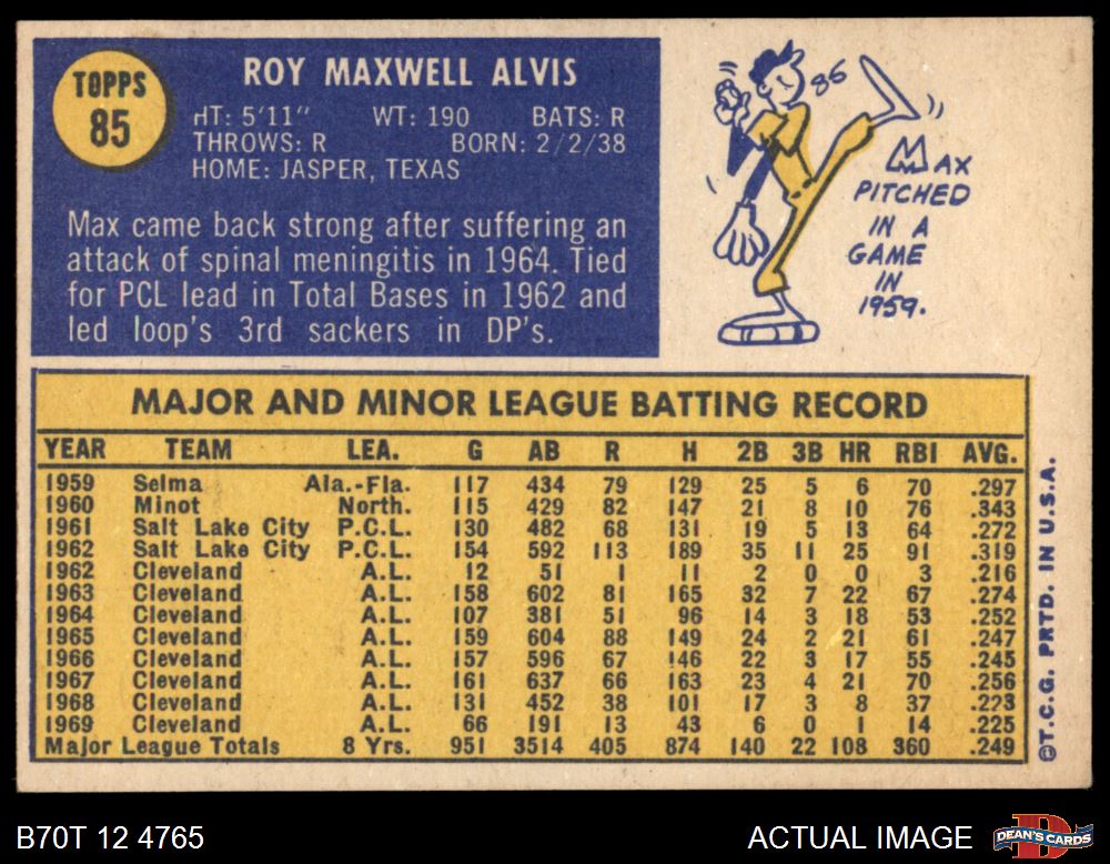 1970 Topps #85 Max Alvis 6 - EX/MT