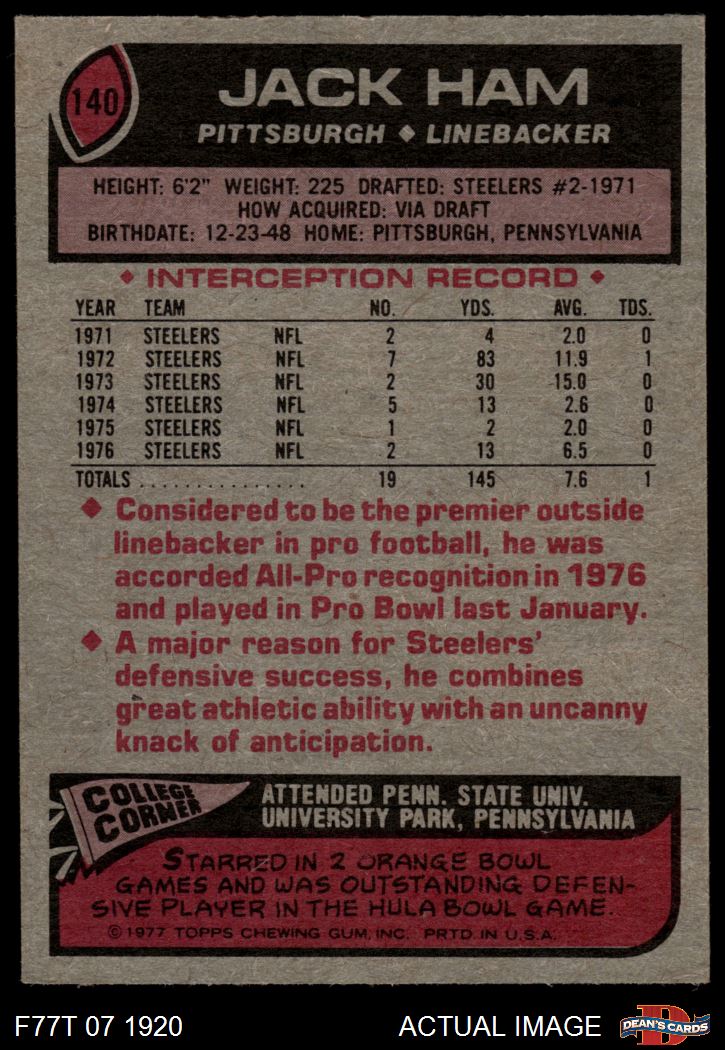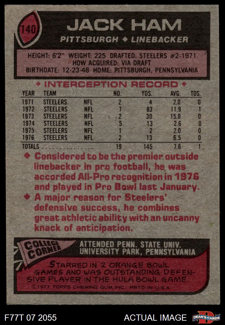 1977 Topps #140 Jack Ham